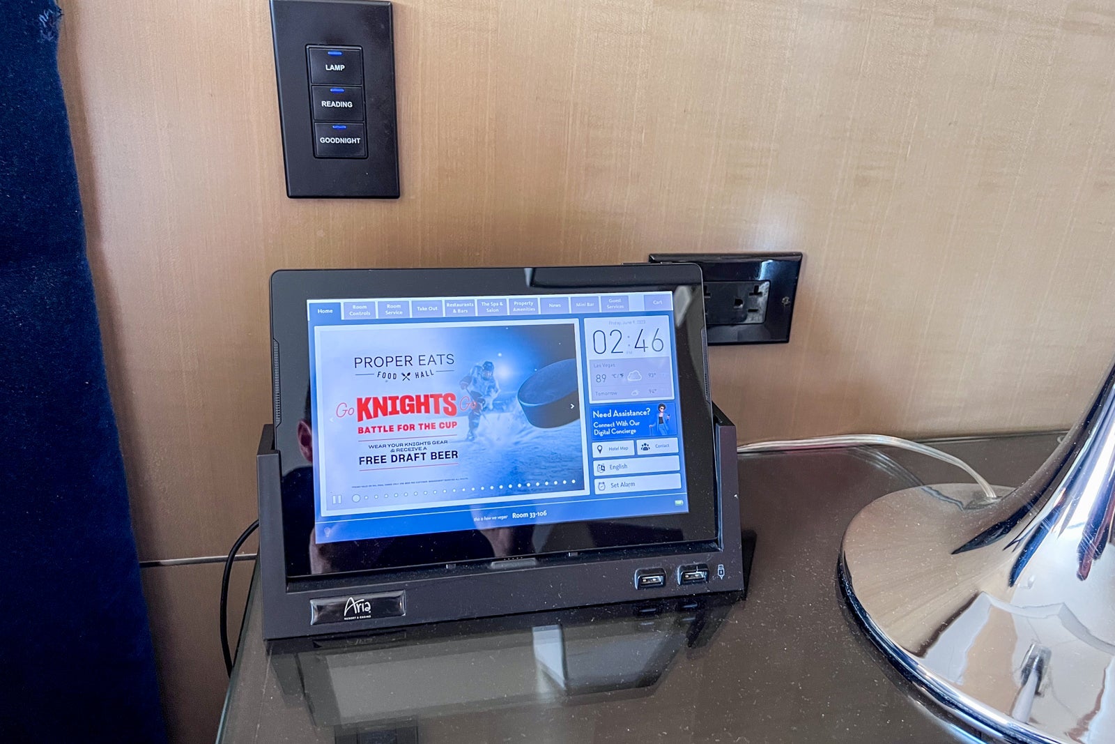 One of the reading lamp lights wasn't working, which I thought would have been checked during turnover before my arrival. Additionally, many of the light switches seemed as glitchy as the tablet or didn't work at all. The hotel room's TV offered device connectivity, but I stuck to just reading from my phone or laptop.