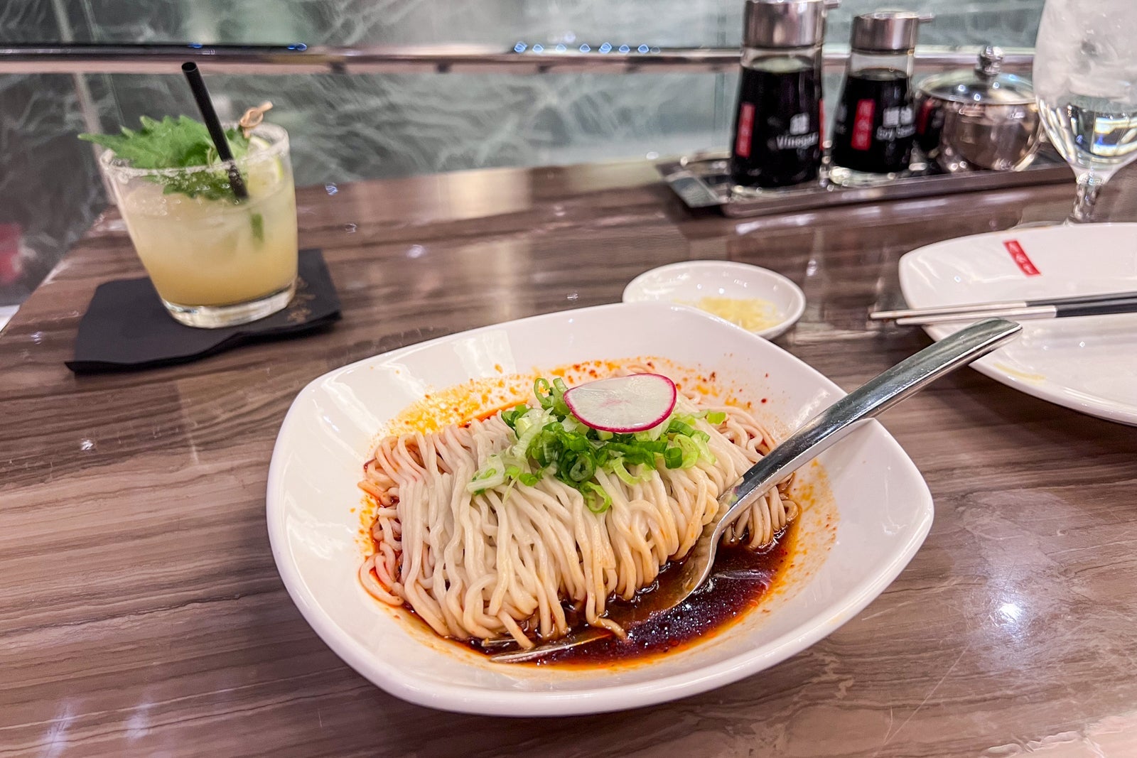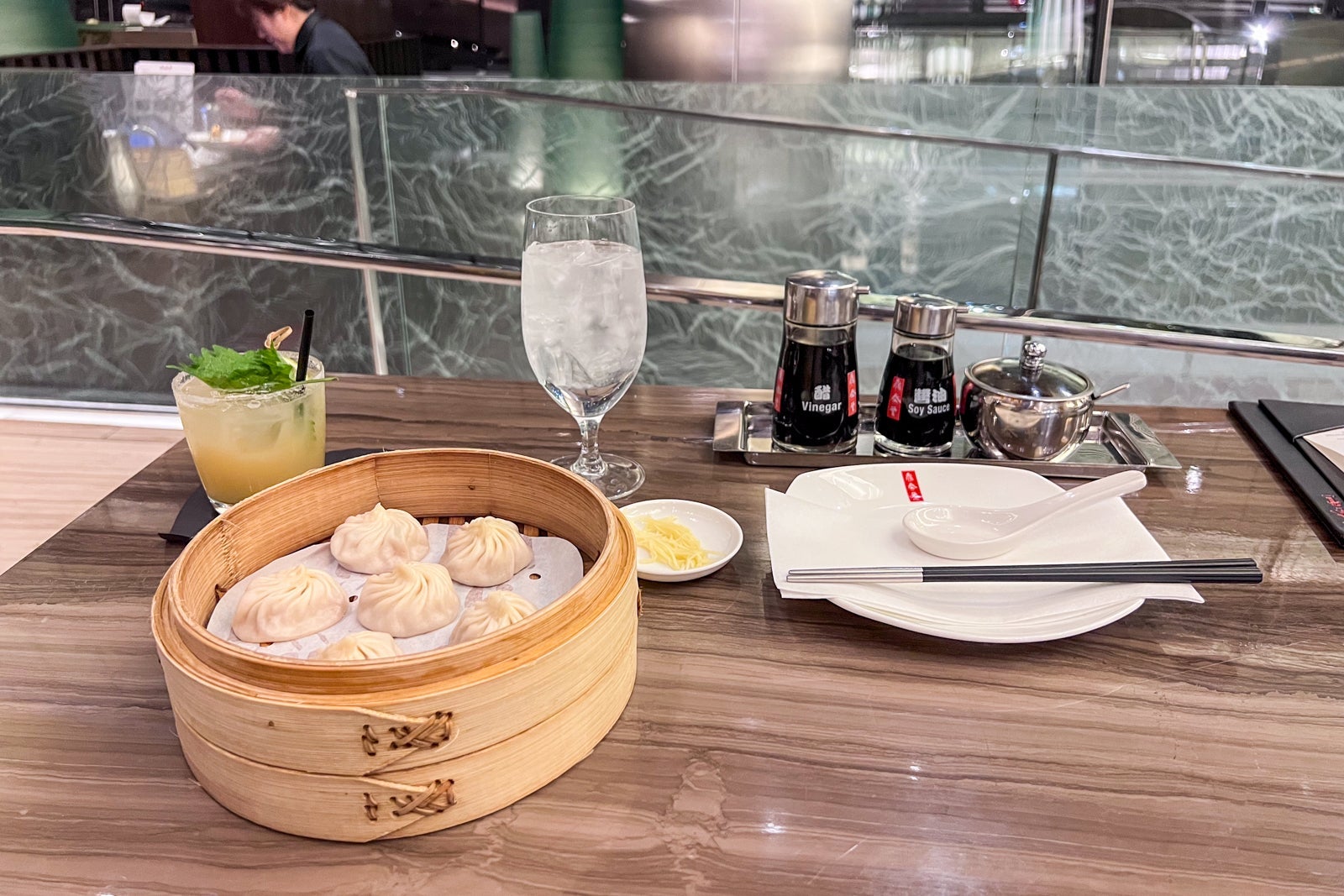 My "affordable" dinner at Din Tai Fung, a famous Taiwanese dumpling and noodle restaurant that opened a Las Vegas outpost at Aria in 2020, came to $92.50 for a yuzu margarita, pork xiao long bao (soup dumplings), steamed shrimp and pork dumplings and spicy noodles. The food, recommended by the very friendly waitress, was delicious, but I felt a little rushed (I was in and out in under 40 minutes). It was fun, however, to watch the chefs make the dumplings in the display kitchen near the host stand at the restaurant.