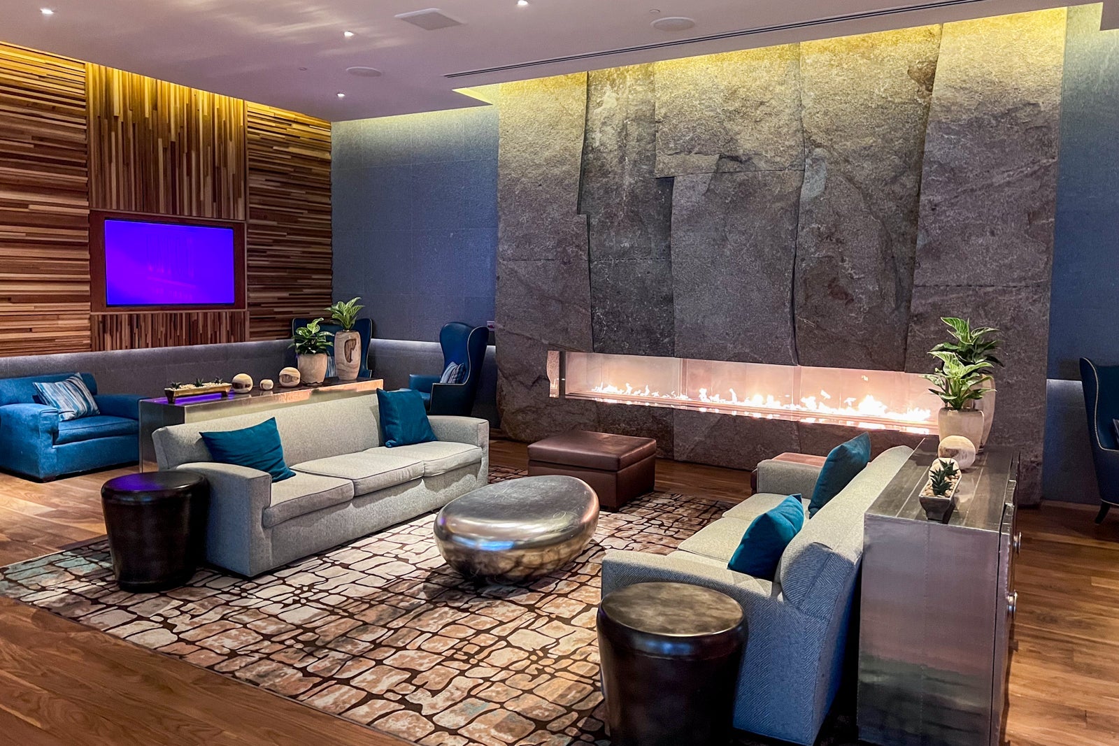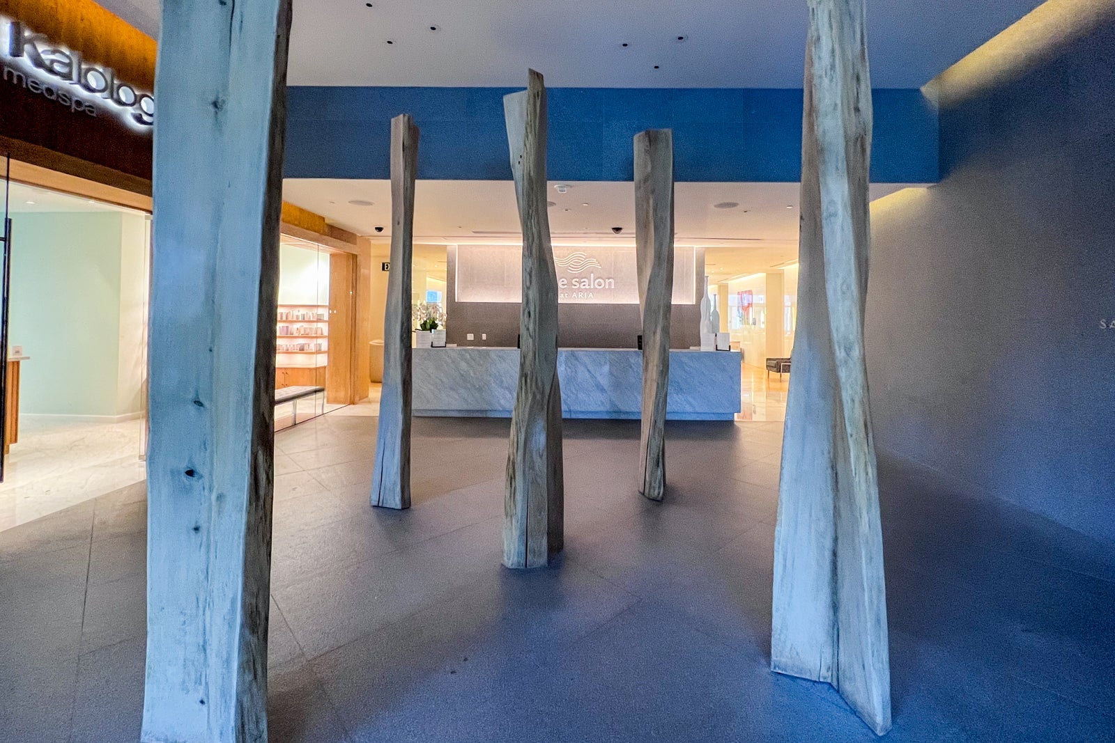 I didn't book a treatment at the Aria Spa & Salon but passed through every day of my stay en route to the gym. Both spaces are very modern and sleek, and there's an inviting seating area with a fireplace just outside the gym.