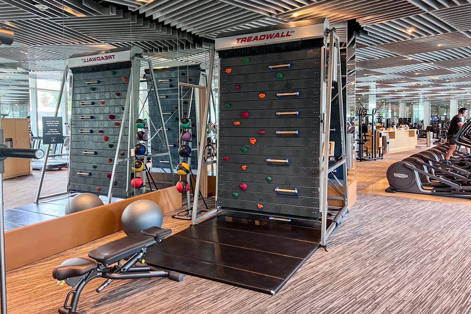 The hotel fitness center overlooking the pool area was spacious and had all the cardio and weightlifting equipment one needs for a variety of workouts. There's even a rock-climbing wall and bowls filled with chilled towels to cool off post-workout.