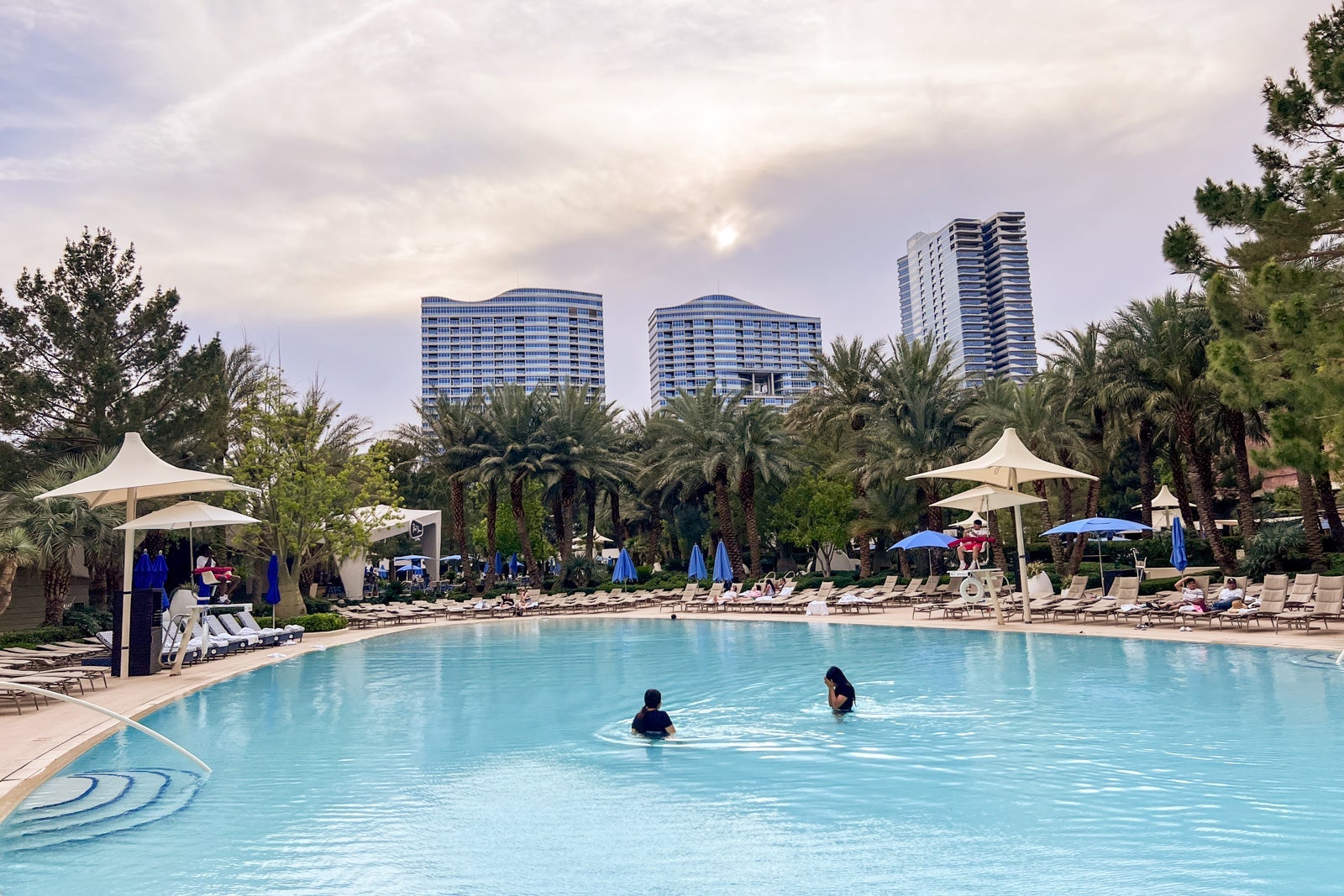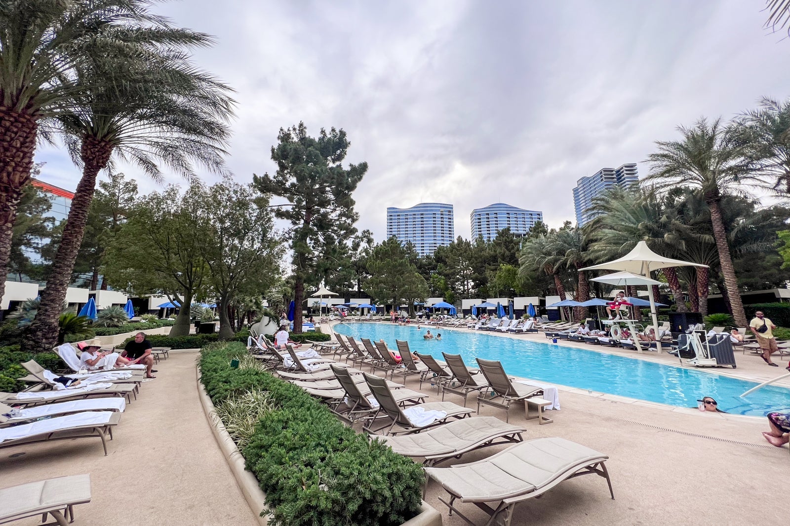I came out of the gym each morning just before the pool's 9 a.m. opening time to an extraordinarily long line of folks jockeying to stake the claim to a lounger outside. This deterred me from checking out the pool daily until mid-afternoon when things calmed down. Aria features three pools; though one is a private pool for Sky Suites guests only.