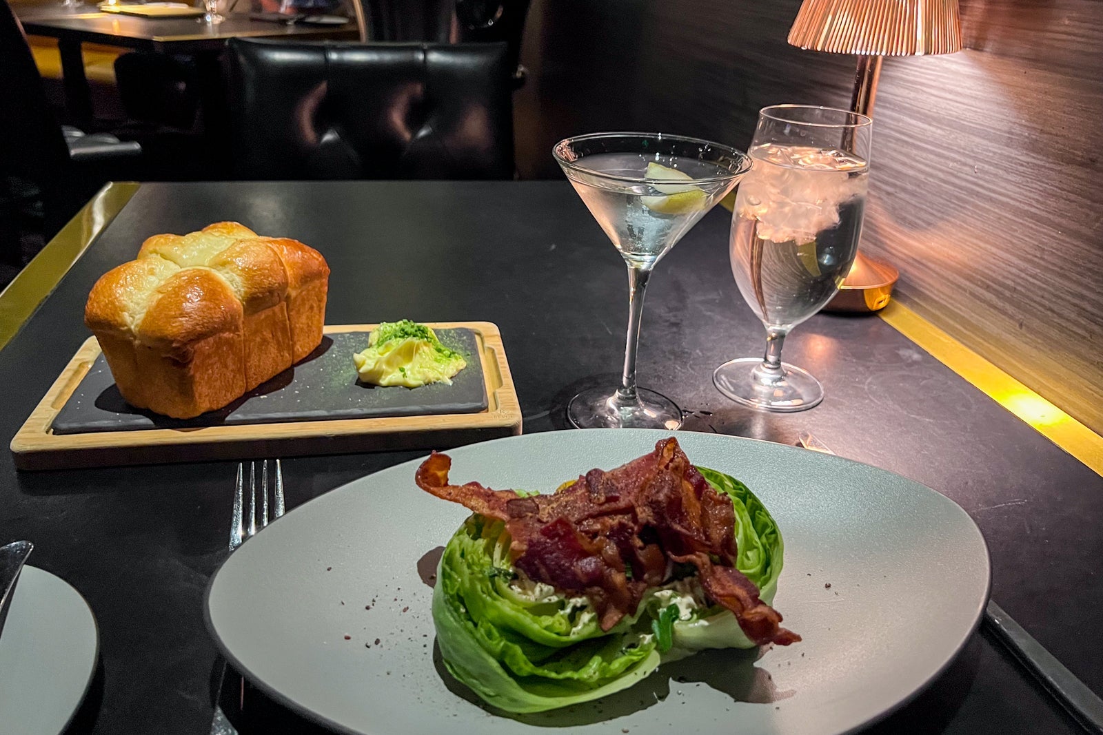 Let's say I went the "bargain" route at the luxe restaurant by ordering a $23 wedge salad, a $74 8-ounce filet mignon and a $21 side of crunchy potatoes served with chili yogurt and herbs. By no means was this cheap, but I was surprised to see a gin martini here going for "only" $20 when a glass of 2021 George Pinot Noir Ceremonial went for $25. A scoop of ice cream ($8) and a double espresso ($7) rounded off the meal.