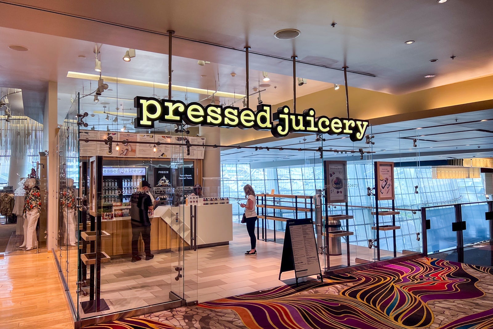 For those in a bit of a rush in the morning, the mobile ordering at Aria's second-floor Starbucks consistently worked. Also, the Pressed Juicery across the hall is a healthy alternative (though a costly one considering a wellness shot of ginger and lemon juice plus an acai bowl came to $16.50).