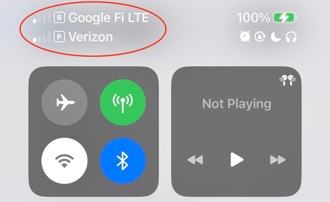 When Google Fi is listed first, that means it's being used as the primary data line and Verizon is active in the background. APPLE