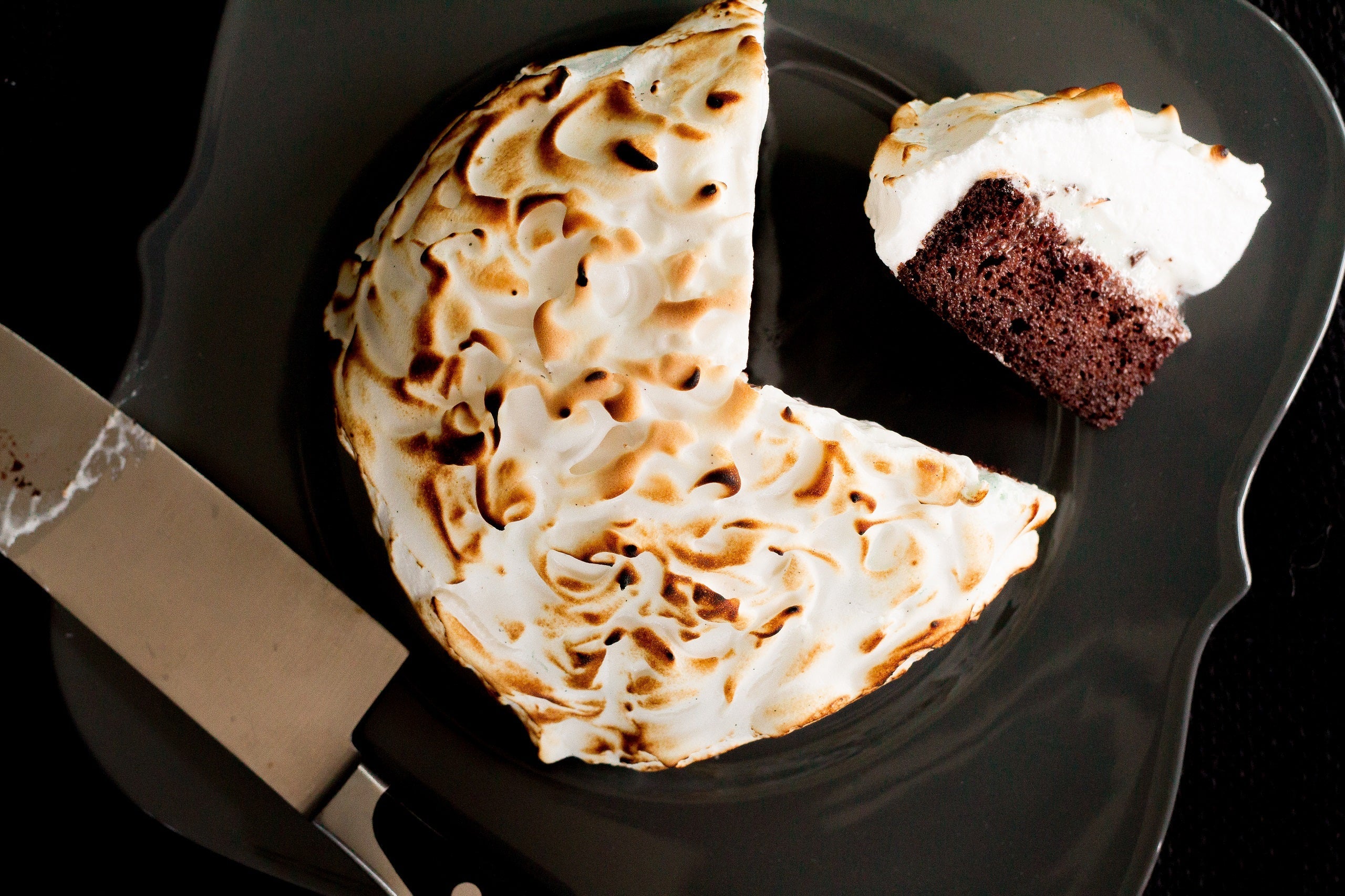 Preheat the oven to 500 degrees. Bake until the meringue is golden. Alternately, used a blowtorch to brown it. Allow to cool for 5 to 10 minutes, and put any leftovers back in the freezer.