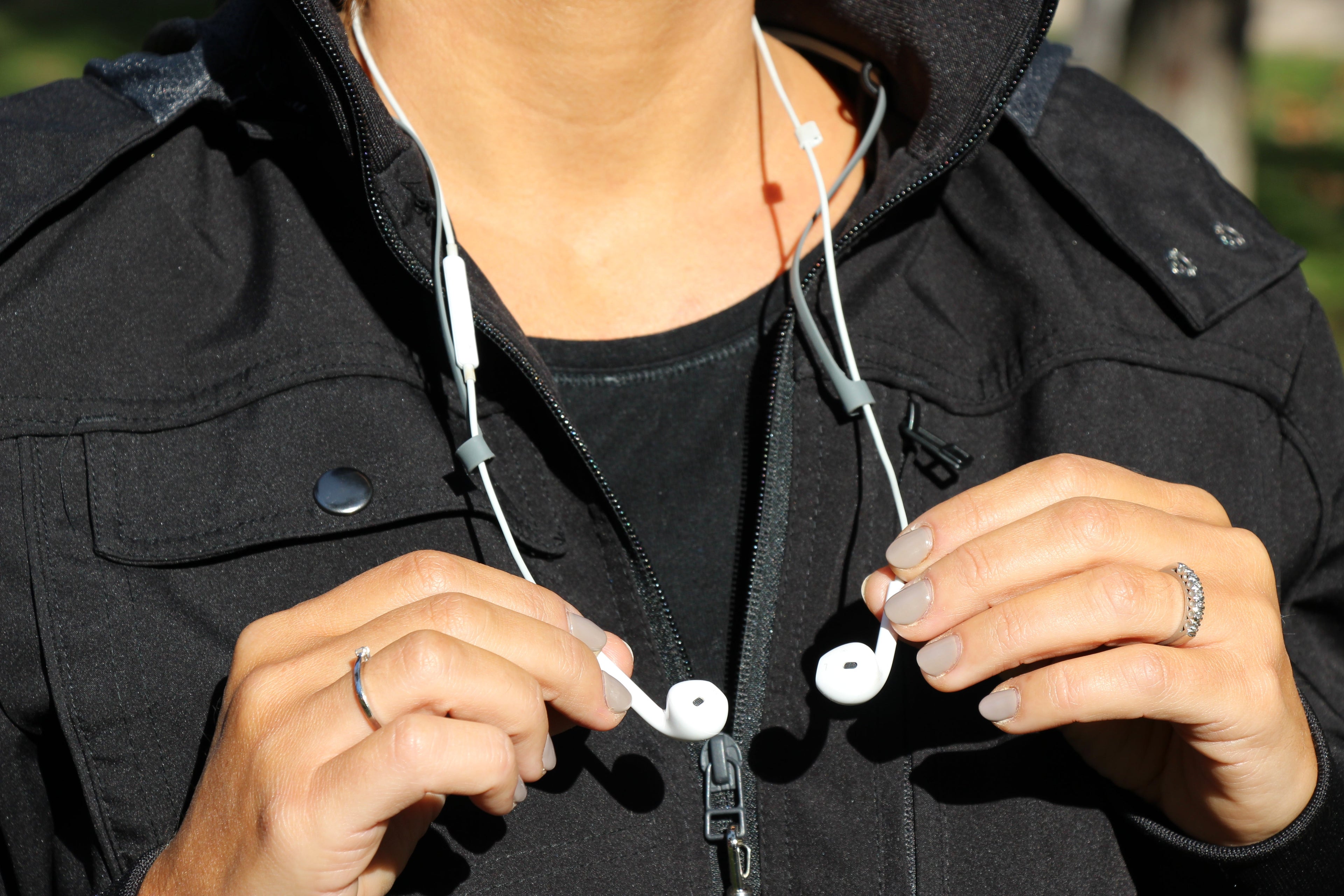 Earbuds Holder: I liked the concept, but in reality, the rubbery straps got stuck in my hair and tangled in my sweatshirt. They'd be much easier to use with just wireless earbuds, but then, what's the point? The good news is, you can easily remove this rubber holder from the jacket, which I plan on doing.