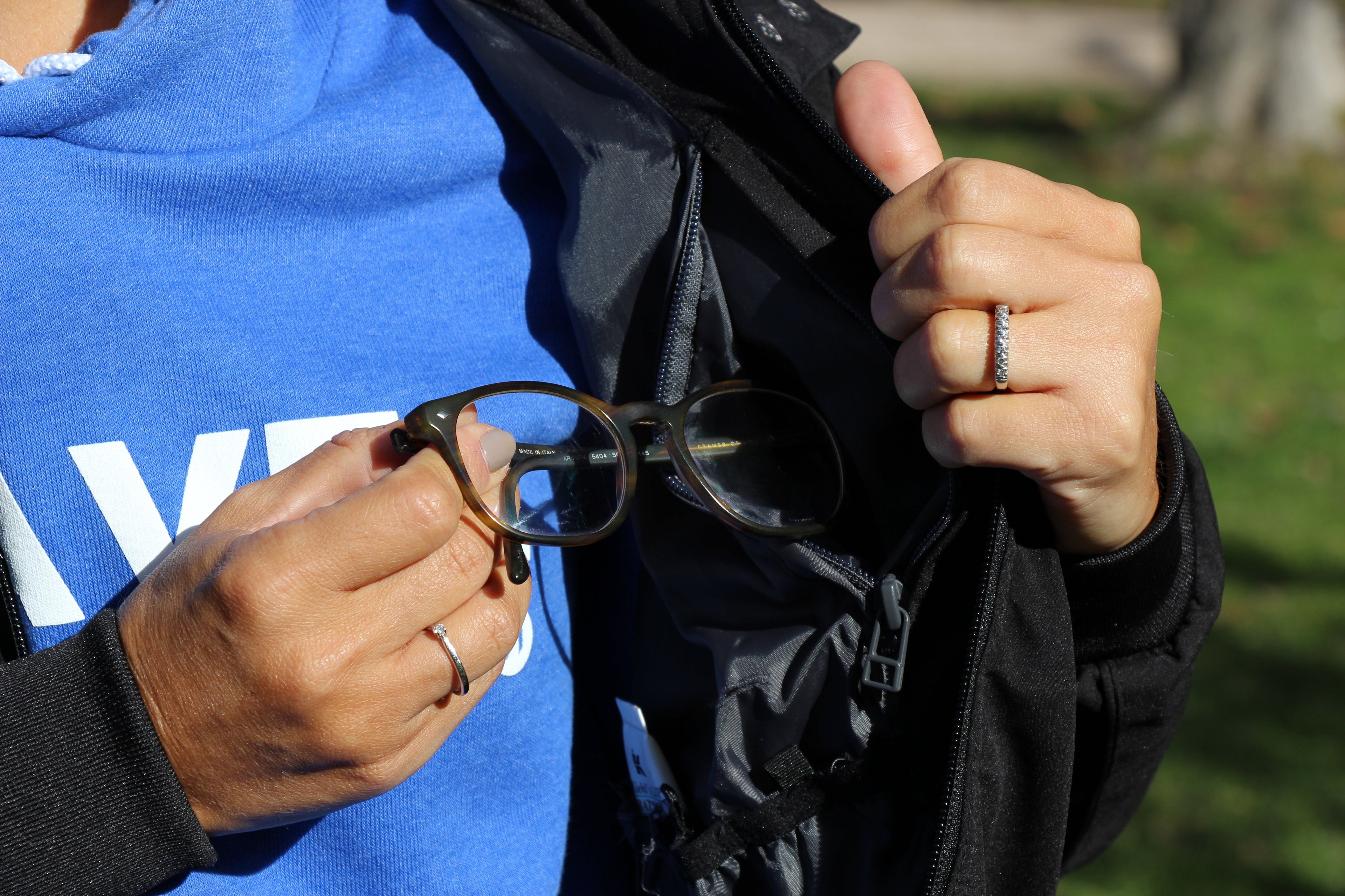 TheGlasses Pocket: I did use this for swapping out eyeglasses and sunglasses, a nice touch. You could fit a slim glasses case in there, too.
