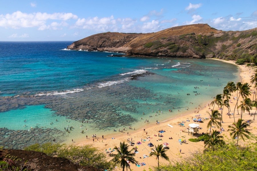 Hanauma Bay, formed by a volcanic crater. (Photo by Ignatius Tan/Shutterstock)