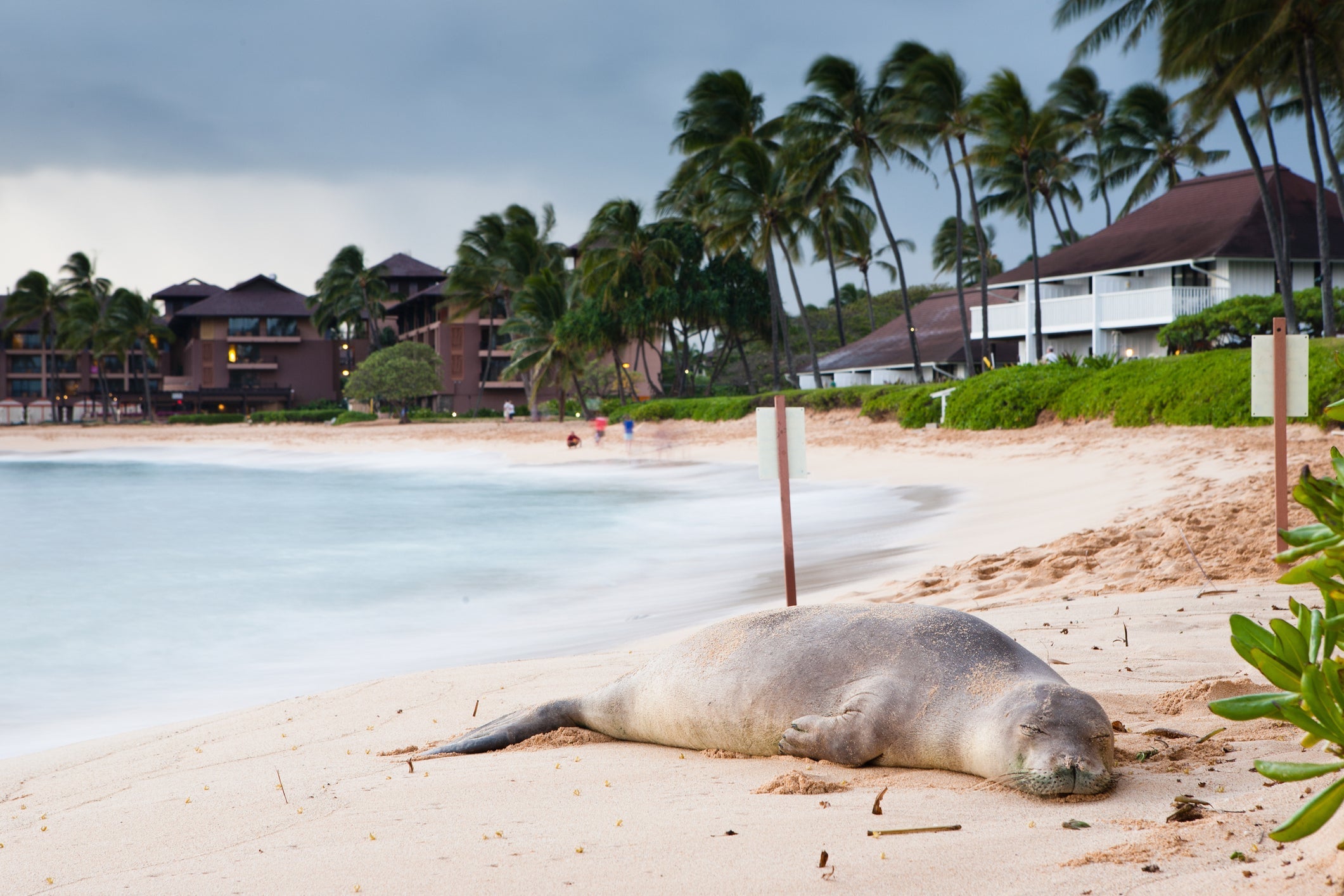 An endangered Hawaiian monk seal at Poipu Beach in Kauai. (Photo by Matthew Micah Wright/Getty Images)