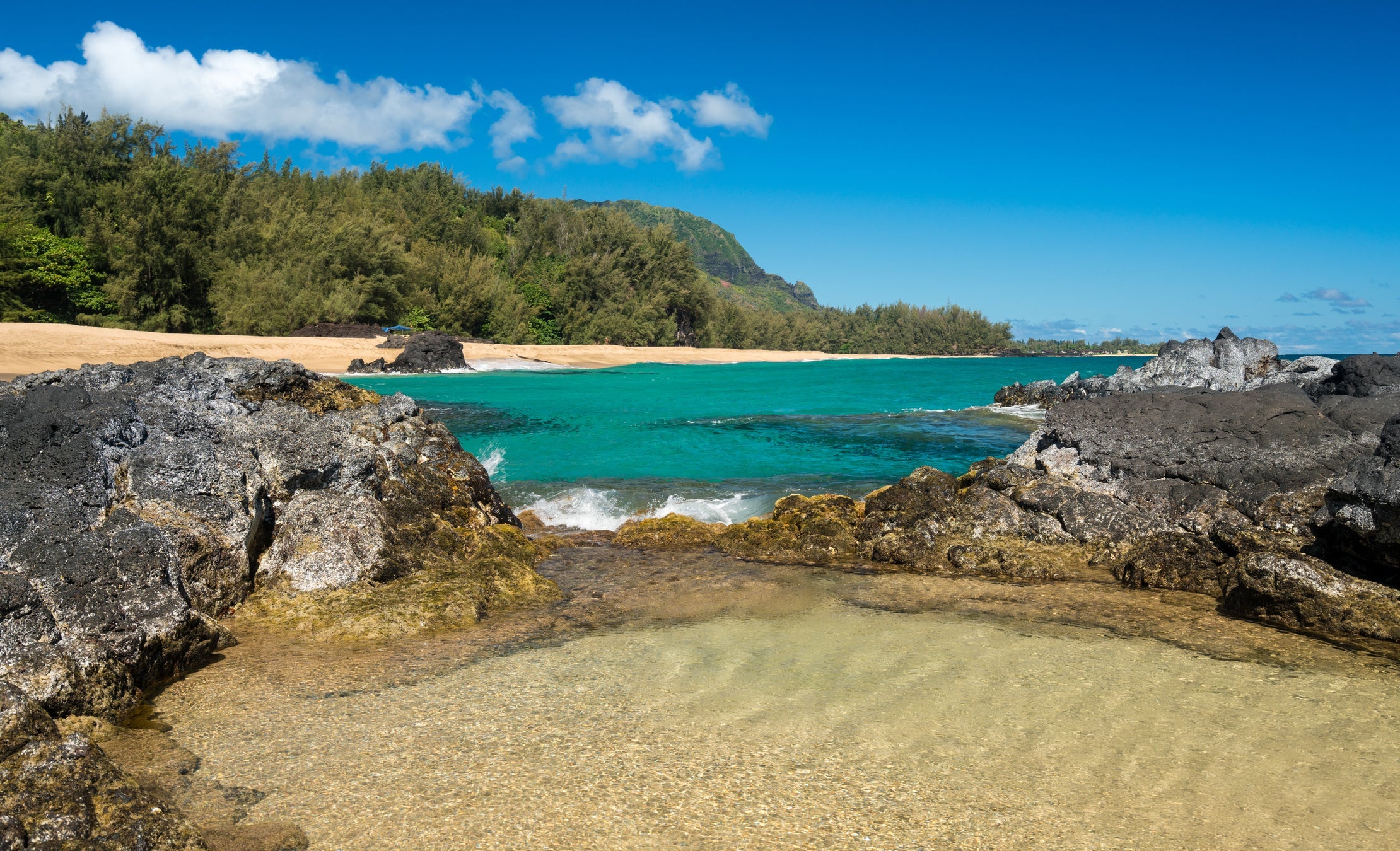 A rock pool at Lumahai Beach in Kauai. (Photo by BackyardProduction/Getty Images)