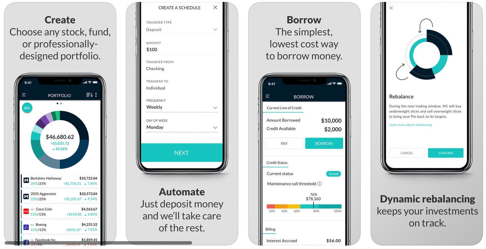 Jon Dulin, Personal Finance Expert at MoneySmartGuides.com, is a big fan of the M1 Finance app. Dulin explains, "M1 Finance lets me build a completely customized stock dividend portfolio and buy fractional shares, all at zero cost to me. The app shows me everything I need at a glance. I don't waste time searching."