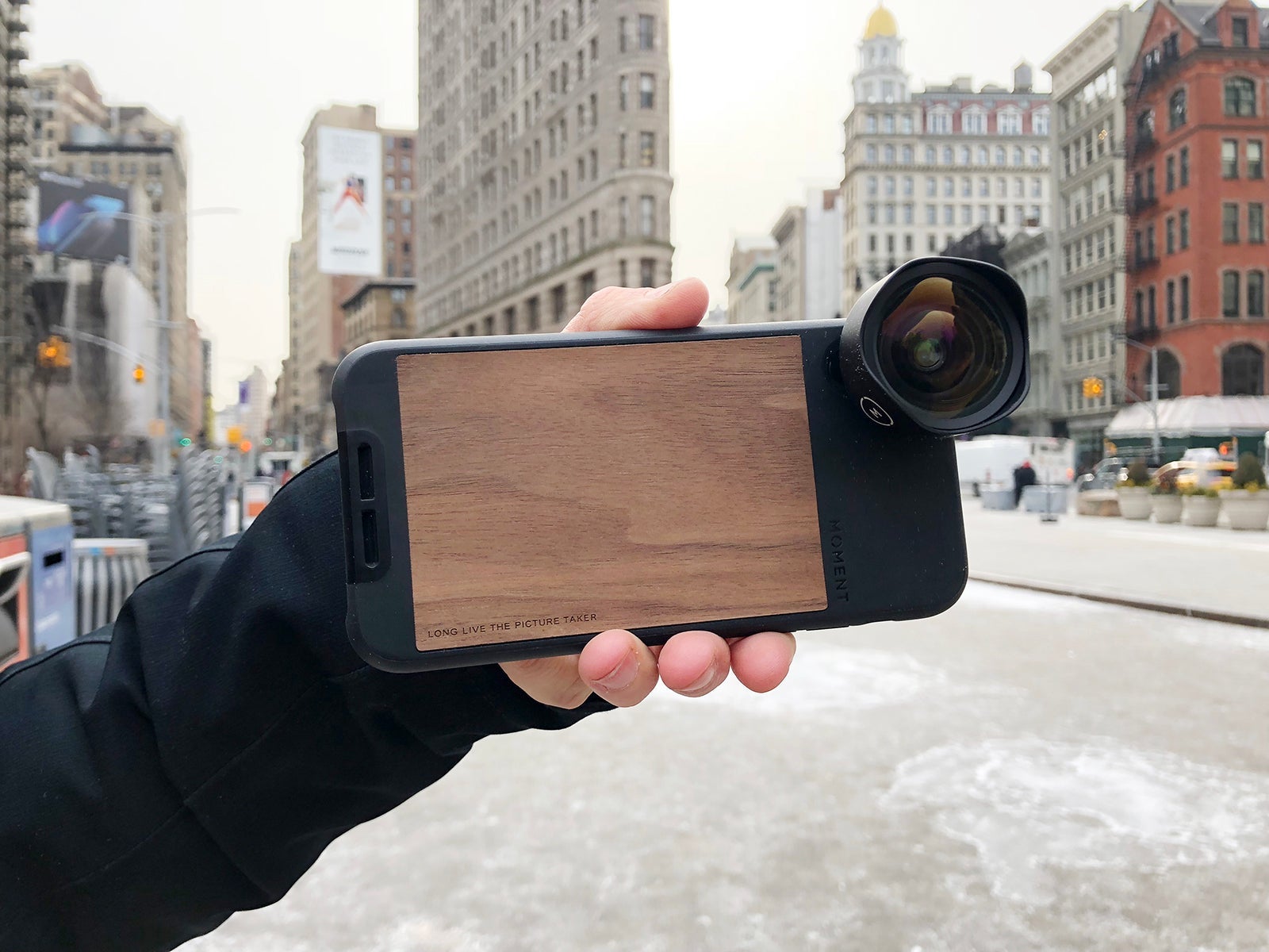 The Design: This kit features an 18mm wide lens made from aerospace-grade metal and cinema-quality glass, which has a decent amount of weight to it, a twist-and-lock lens mount, lens cap and microfiber bag. This lens is only compatible with a Moment case, which needs to be bought separately, bringing the price up to $130 — the most expensive of this particular selection of lenses. The lens locks easily onto the case, and feels more secure than those that use external clips.