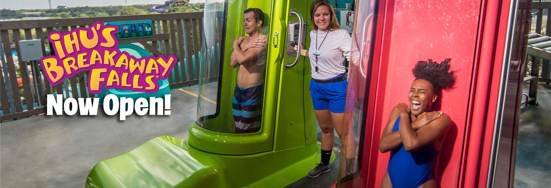 Now open at Aquatica San Antonio, Ihu's Breakaway Falls is the tallest slide in Texas and is sure to offer refreshment from the summer heat. Ascend more than 100 steps to enter a glass tube for your 80-degree free fall into a watery abyss. Two rides line up side by side in separate tubes, and the thrill comes in waiting for the drop — and not knowing who will be released first. Riders must be 48 inches or taller.