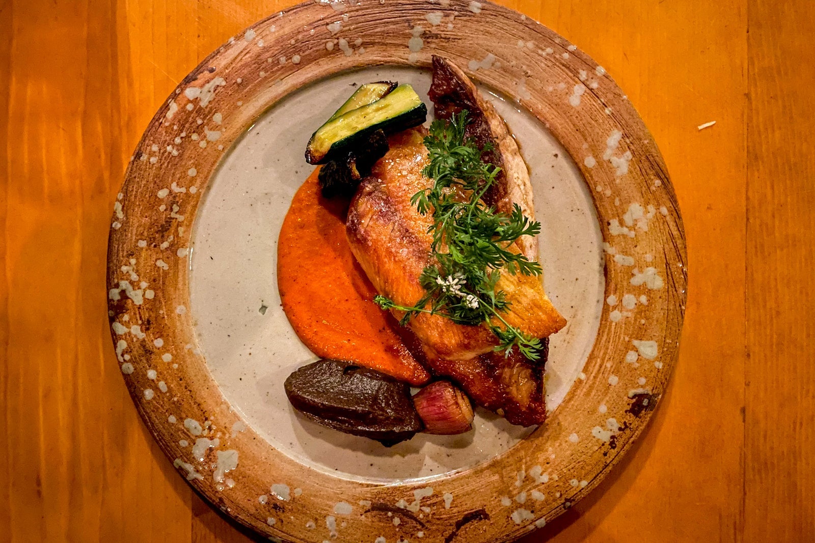 Just a three-minute walk from the hotel, Lumbre was — perhaps initially worryingly — able to accommodate me immediately. But the moody, dark space with its exposed brick walls and open kitchen felt like the perfect spot for my birthday party of one.