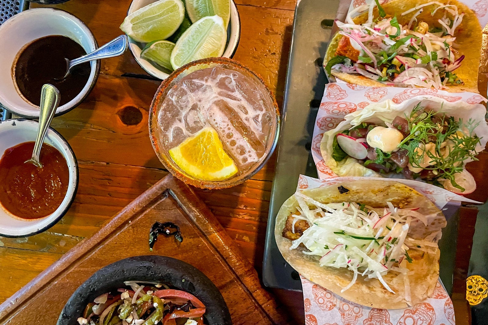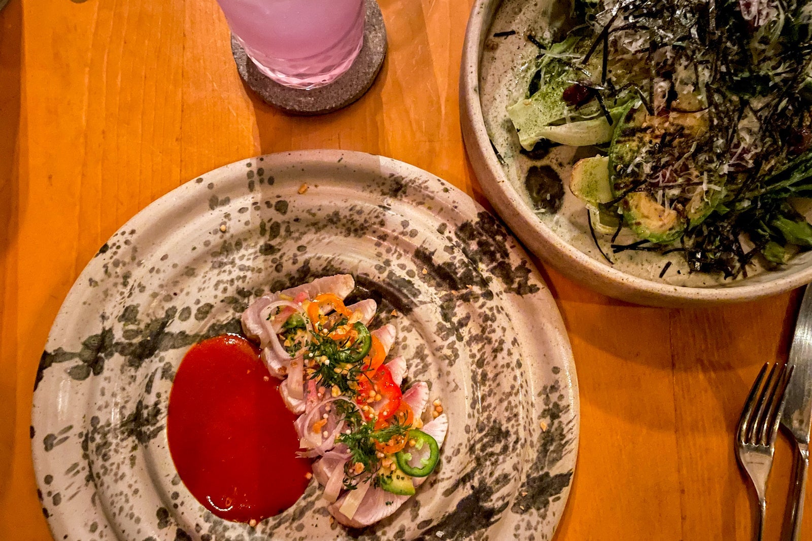 I ordered the restaurant's signature Collins — a smoky mix of tequila, soda, butterfly pea flower, local Damiana liqueur and mesquite syrup — and tucked into plates of seared fish tataki, grilled romaine with avocado and seaweed, and fresh-caught fish with ladrillo mole and cauliflower puree.