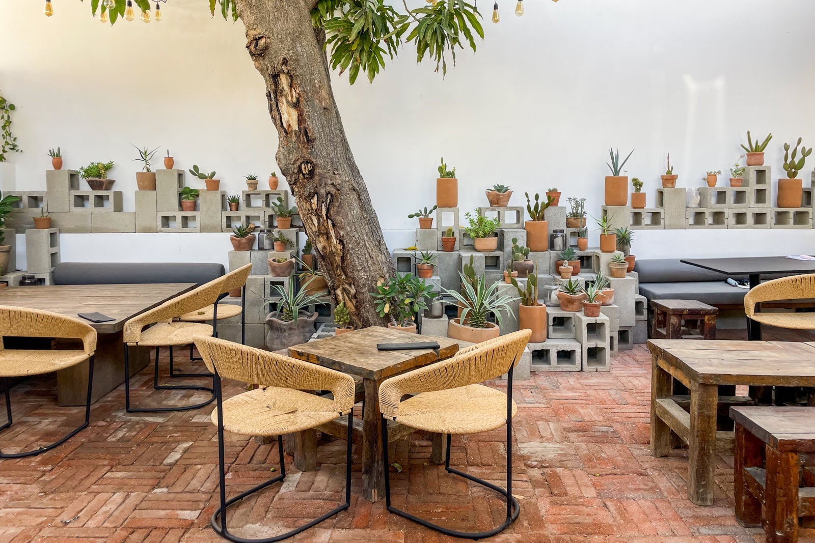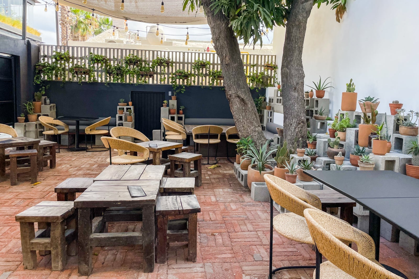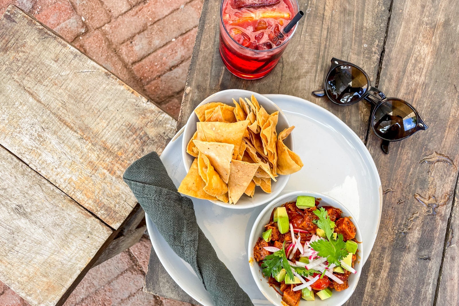 I received a welcome hibiscus mezcalita and ordered the tuna ceviche with corn chips. As I snacked, I admired the immaculately decorated brick courtyard, shaded by sun sails and decorated with artfully arranged cacti in terracotta pots piled on cinderblocks, as Talisco's cinematic "Thousand Suns" emanated from the bar. I had made it.