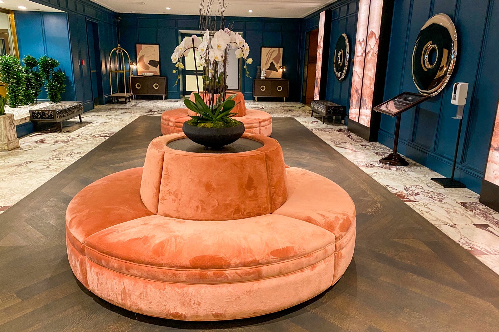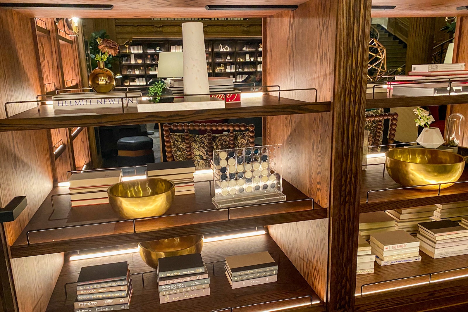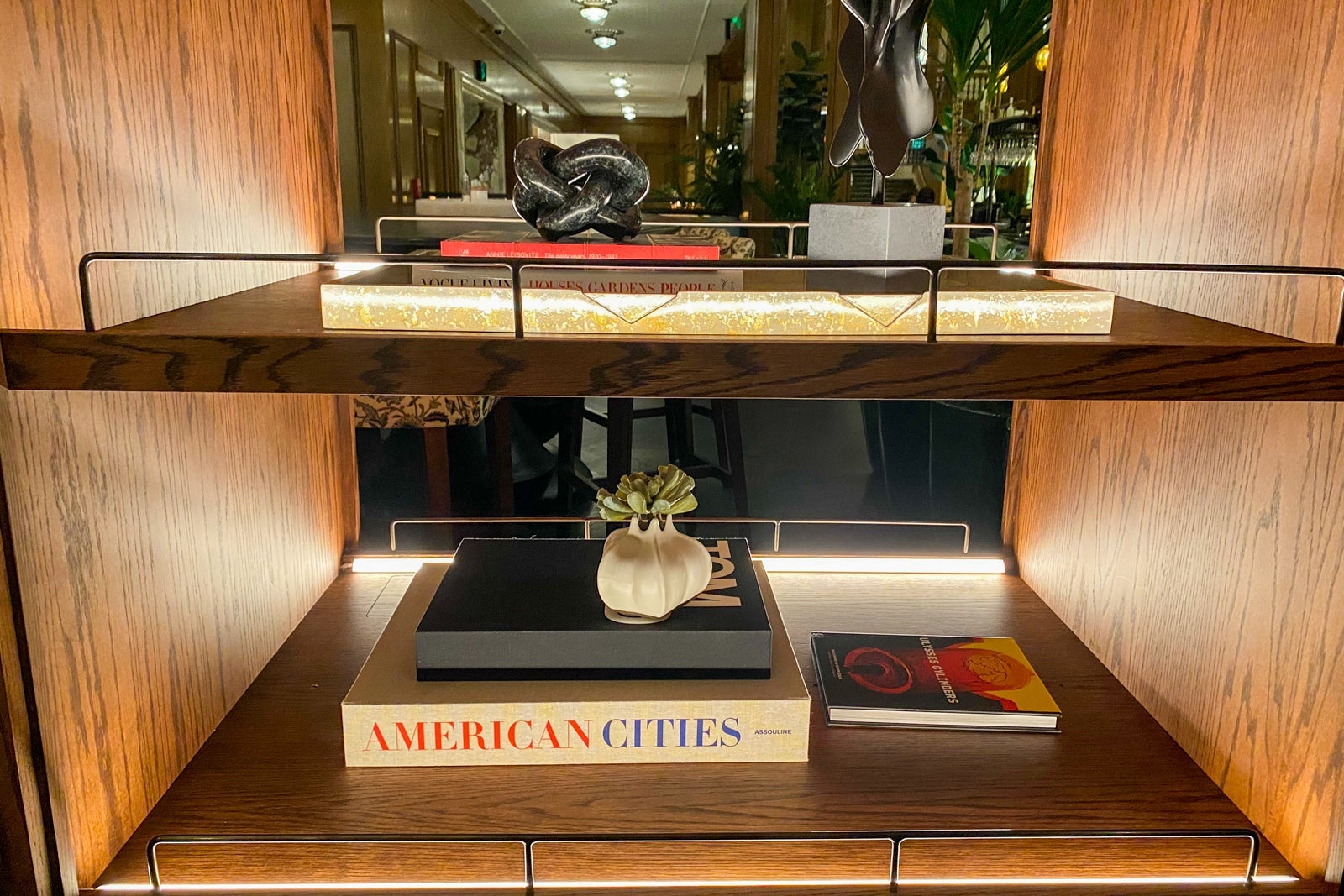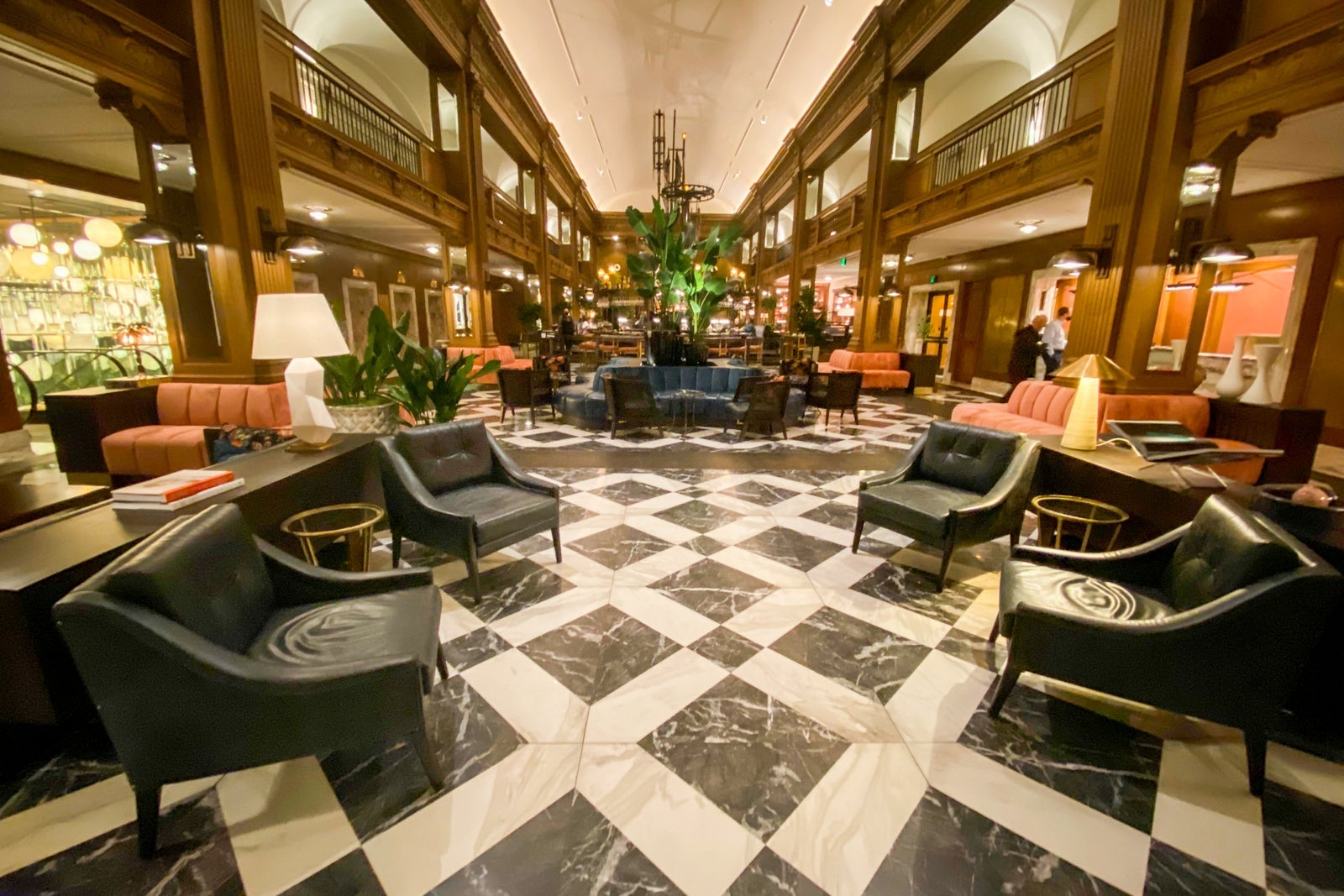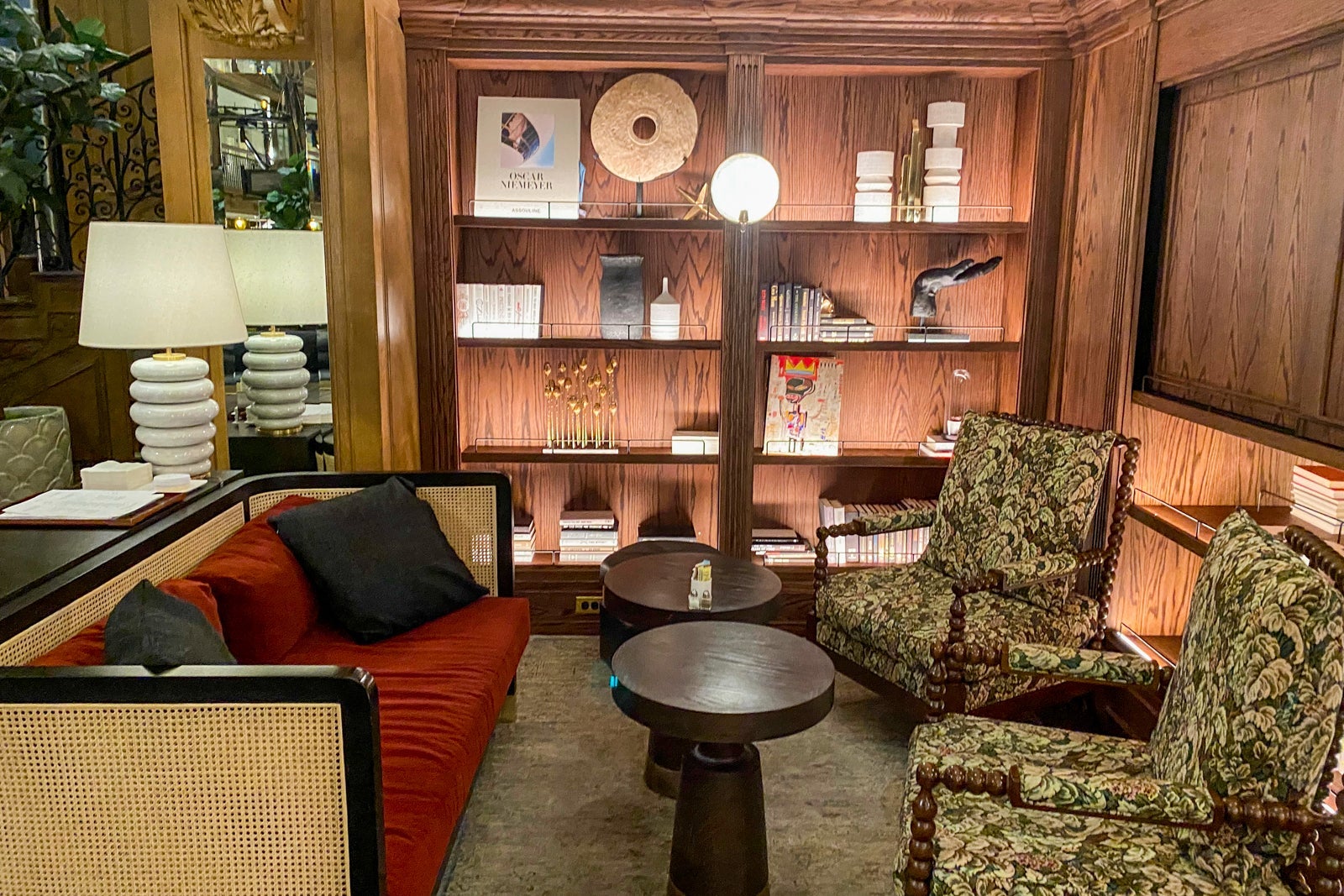 Although the bar and lobby area underwent a $25 million renovation in 2020, it beautifully combines elements of its past while feeling fresh and modern. Original terrazzo and marble flooring sit beneath chandeliers straight from Italy, and the ornate woodwork carried throughout the space offers a nice contrast to the contemporary artwork, board games and books accenting the space.
