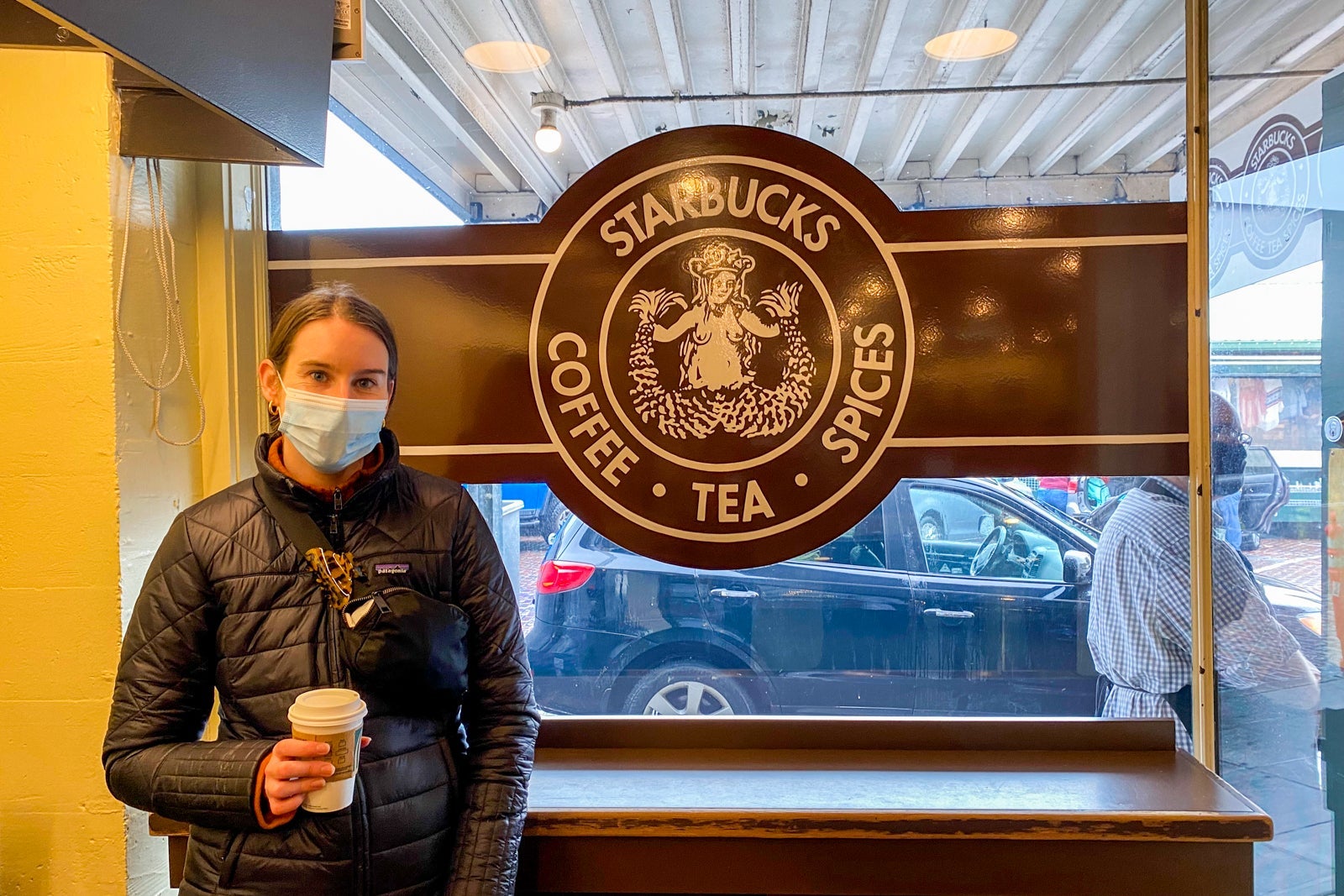But the star of the show for me was the original Starbucks at 1912 Pike Place, which has operated out of the same 1,000-square-foot space since 1971. I first started consuming Starbucks regularly in 2006 when a store opened by my parents' house. Although my coffee shop preferences have widened since then, I still feel great pleasure in consuming coffee out of the original green-and-white Starbucks cup, which is why I deviated from my usual iced coffee and instead ordered a hot oat latte for the sake of this story.