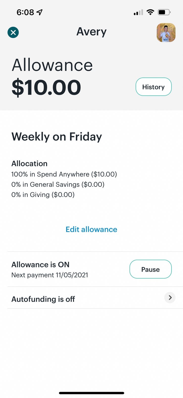 Additionally, the app is simple to use and aesthetically pleasing. I love that there are options to set category-based spending controls and that we have the ability to split his allowance between spending, saving and charitable donations.