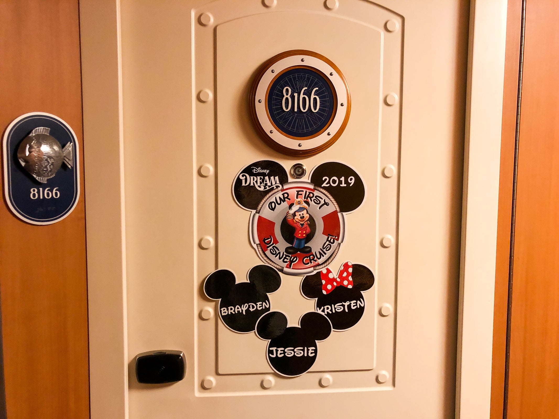 You can keep things simple or order personalized magnets on a site like Etsy in advance of your sailing. You may see some doors that go all out and even have pouches with goodies in them. Those hanging pouches are known as fish extenders (as they hang off of a fish built into the ship). They often signify that the cabin is participating in a gift exchange with others on the cruise that they arranged beforehand on Facebook.