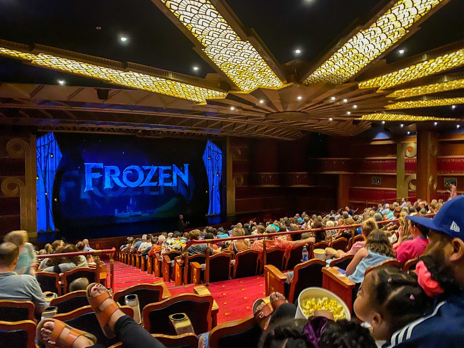 First, 5:45 p.m. is too early to have made the most of your day and be ready for dinner. With all there is to eat on the cruise, you might not even be hungry yet. Beyond that, if you aren't heading into the dark theater to see the show until 8:15 p.m., it can be hard for little ones to sit still or stay awake.