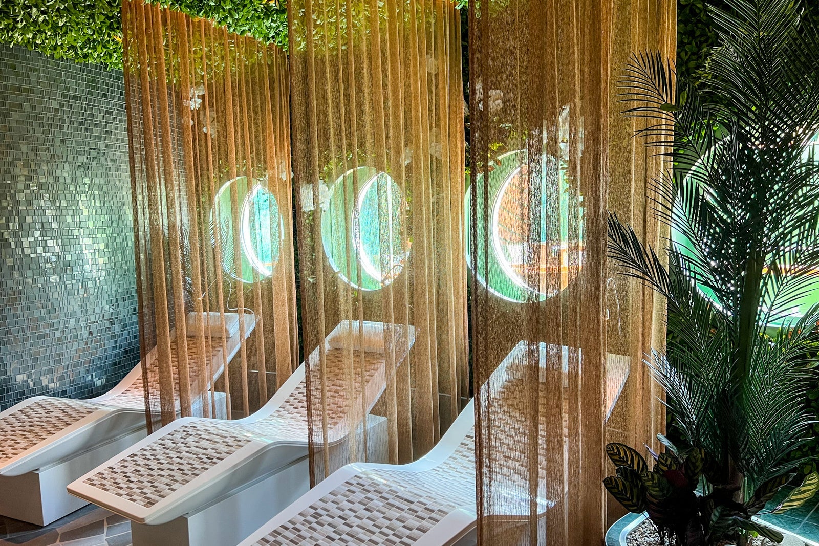 Each of the Disney ships has its own version of this room. On Disney Wish, the space has not only the heated loungers that are a common fixture in each of these thermal areas, but also an indoor and outdoor lounge component, a steam room, a chilled ice room and a relaxing water feature for dangling your feet.