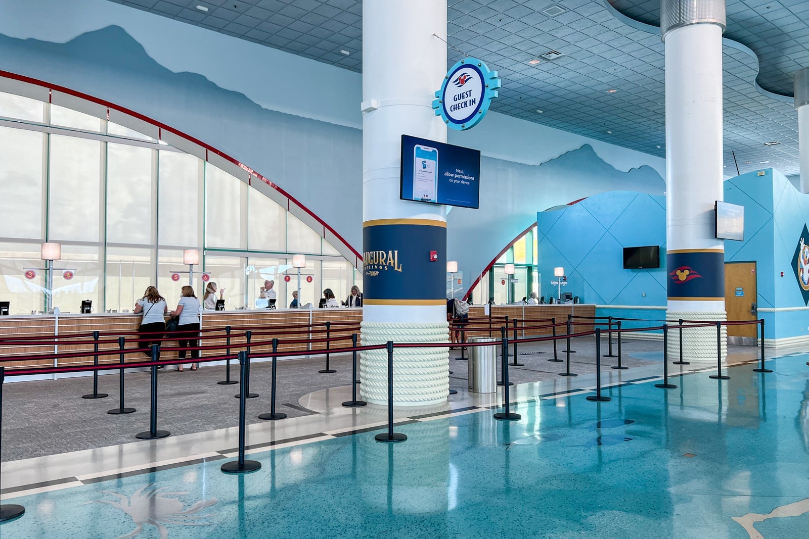 If higher room categories have gone unsold, the check-in staff can tell you the price to upgrade to a nicer room; they can reference a spreadsheet that outlines the upgrade rates based on your current cabin and fare. In my experience, you can save up to half the cost compared to upgrading your room in advance.