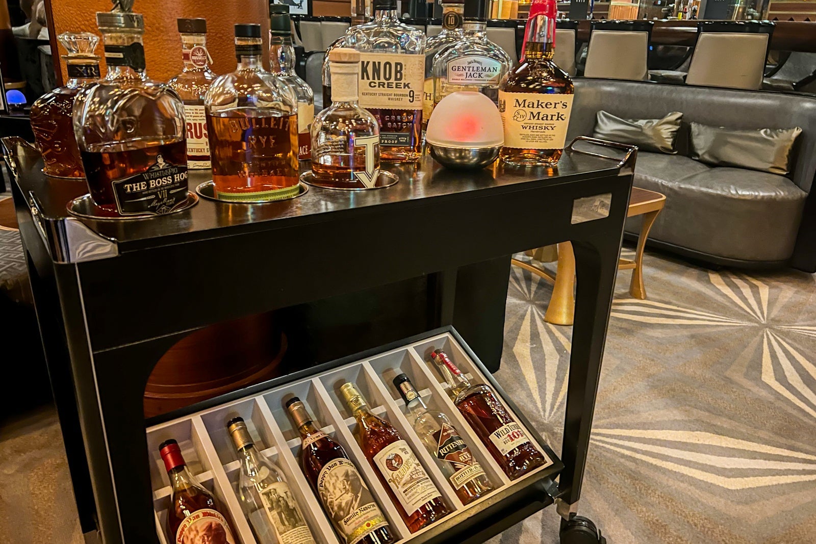 On top of the cocktails and drinks you may expect, Disney ships offer some very high-end liquors on board. I shared a photo of the below beverage cart on Instagram while on a recent cruise and got dozens of messages from people shocked Disney would have Pappy's bourbon. That specific 23-year-old bottle goes for several hundred dollars per drink, and it's on board Disney cruise ships.