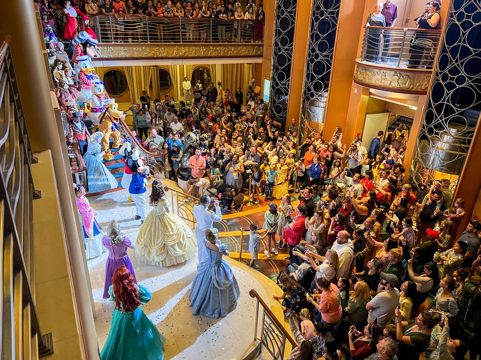 On the last night of each cruise, all of the classic characters come out to the atrium for a short time (15 - 20 minutes) so you can snap a quick photo with anyone you missed before they do their final farewell presentation. Check your app for this goodbye show, which usually occurs around 10 or 10:30 p.m.