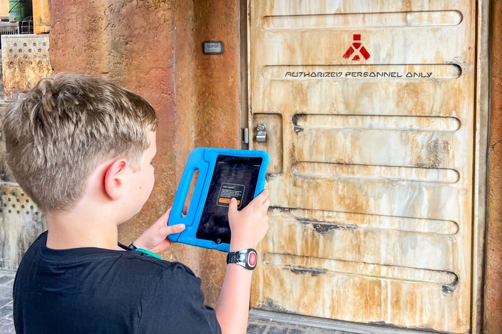 For the most part, we have a no-device rule for our kids once we step off the plane on vacation, but we make an exception in Star Wars: Galaxy's Edge. Here, your "Datapad," "Star Wars" speak for a smart device (iPad minis for our kids) logged in to the Play Disney Parks app, becomes a tool for some of the land's experiences, including the Batuu Bounty Hunt, played in conjunction with a MagicBand+.