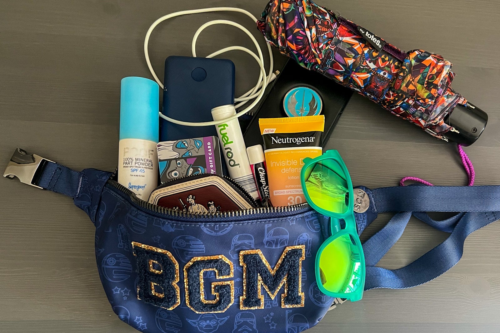 When I visit the parks solo, I manage to pack everything into just a fanny pack, but when I'm with my kiddos, everyone brings their own backpack on the plane and we consolidate and bring just one backpack to the parks.