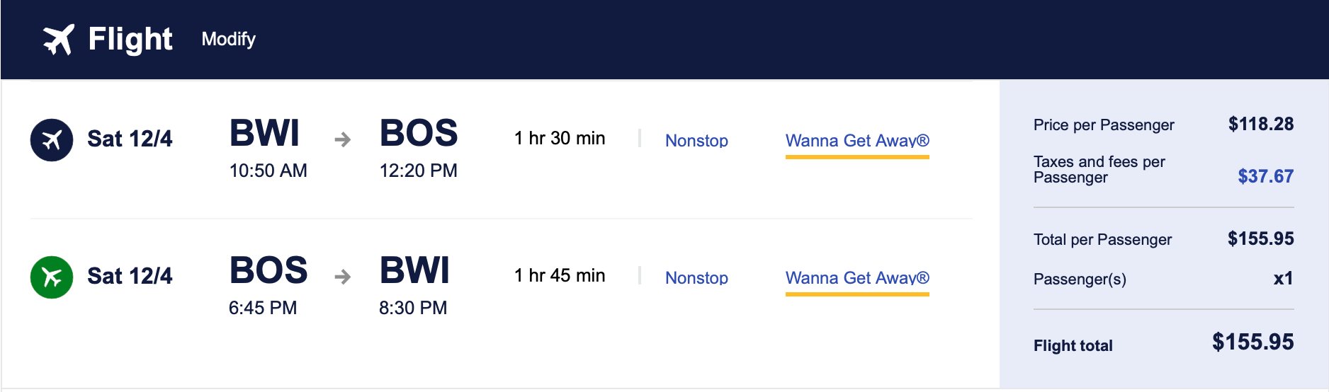 If you want to do it the old-fashioned way — flying short hops to get those one-way segment numbers up — you can. In 2018, I used Southwest's monthly low-fare calendar to find several bargain fares between Baltimore and Boston in December.