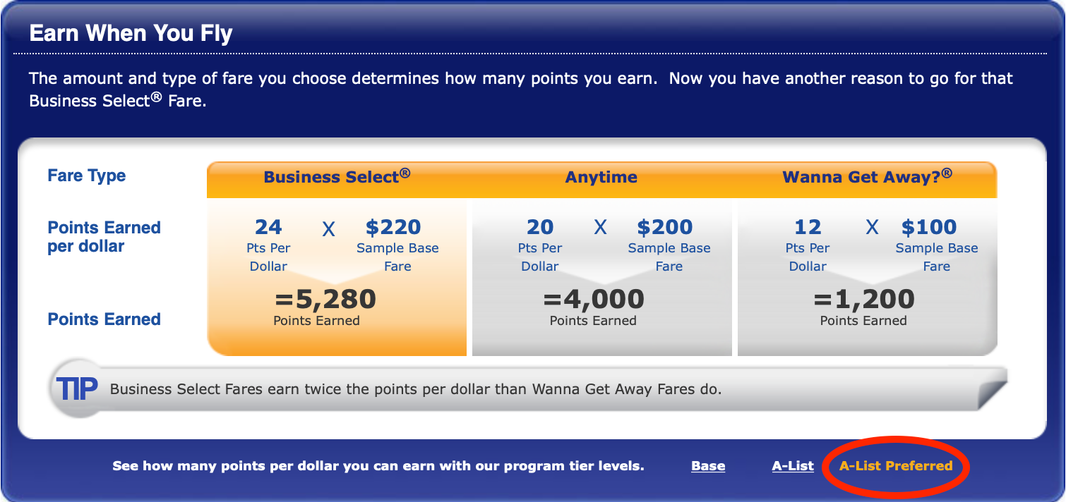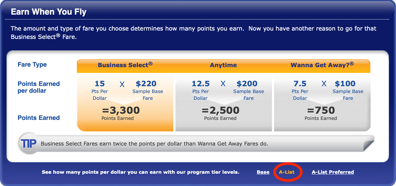 First, unlike with the legacy U.S. carriers, earning Rapid Rewards points that go toward A-List or A-List Preferred status is relatively easy, based entirely on either segments flown or points earned.