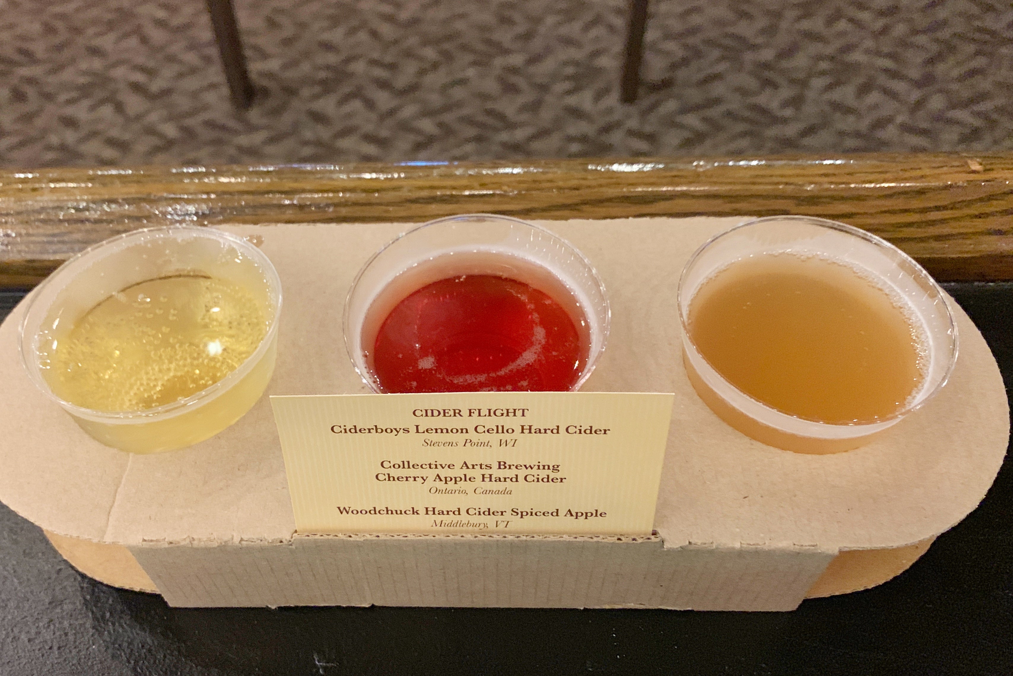 The flight prize goes to a new contender: "Appleseed Orchard." It's hidden behind Canada, where the "O' Canada!" movie used to be shown. The booth doesn't sell any food besides popcorn, so I'd pick up a snack elsewhere and bring it to this booth because it's in an air-conditioned theater with lots of standing tables. The cider sampler was substantial without being overwhelming. I especially enjoyed the Ciderboys Lemon Cello flavor, but I'd try any of them again. At $9.75, it felt like a solid value.