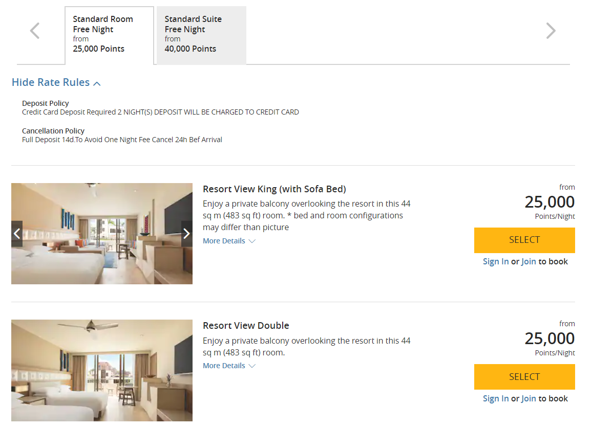 So, if you need a specific room type, want to book for more than two guests or don't want to be assigned a smoking room, this may not be the resort for you. You could book an award (check the cancellation policy before booking) and call the hotel in advance to see if they can give you a room that will fit your needs. But, the system doesn't allow families to stay on points easily.