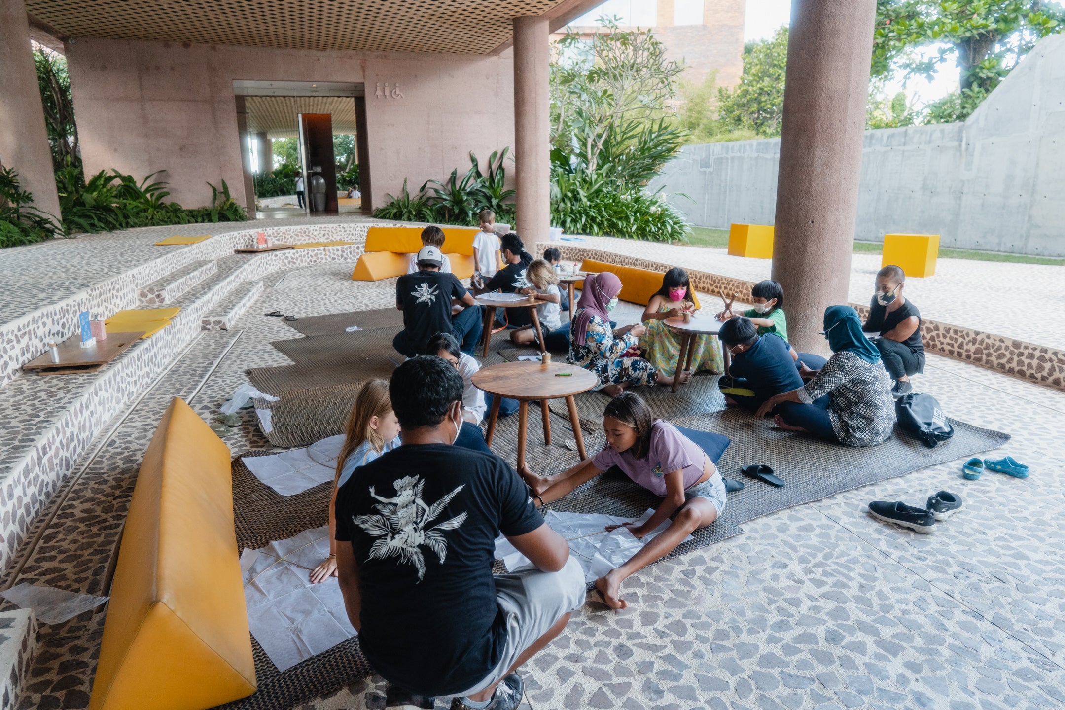 Workshops tap into creativity by using natural materials: think drawing with seeds, painting with sustainable plant-based pigments and making small outrigger boats out of coconut shells to sail in the pool. In addition, kids can create beaded bracelets with the leftover recycled plastic material Potato Head uses to make chairs and other guest amenities, learning how not to waste a single item.