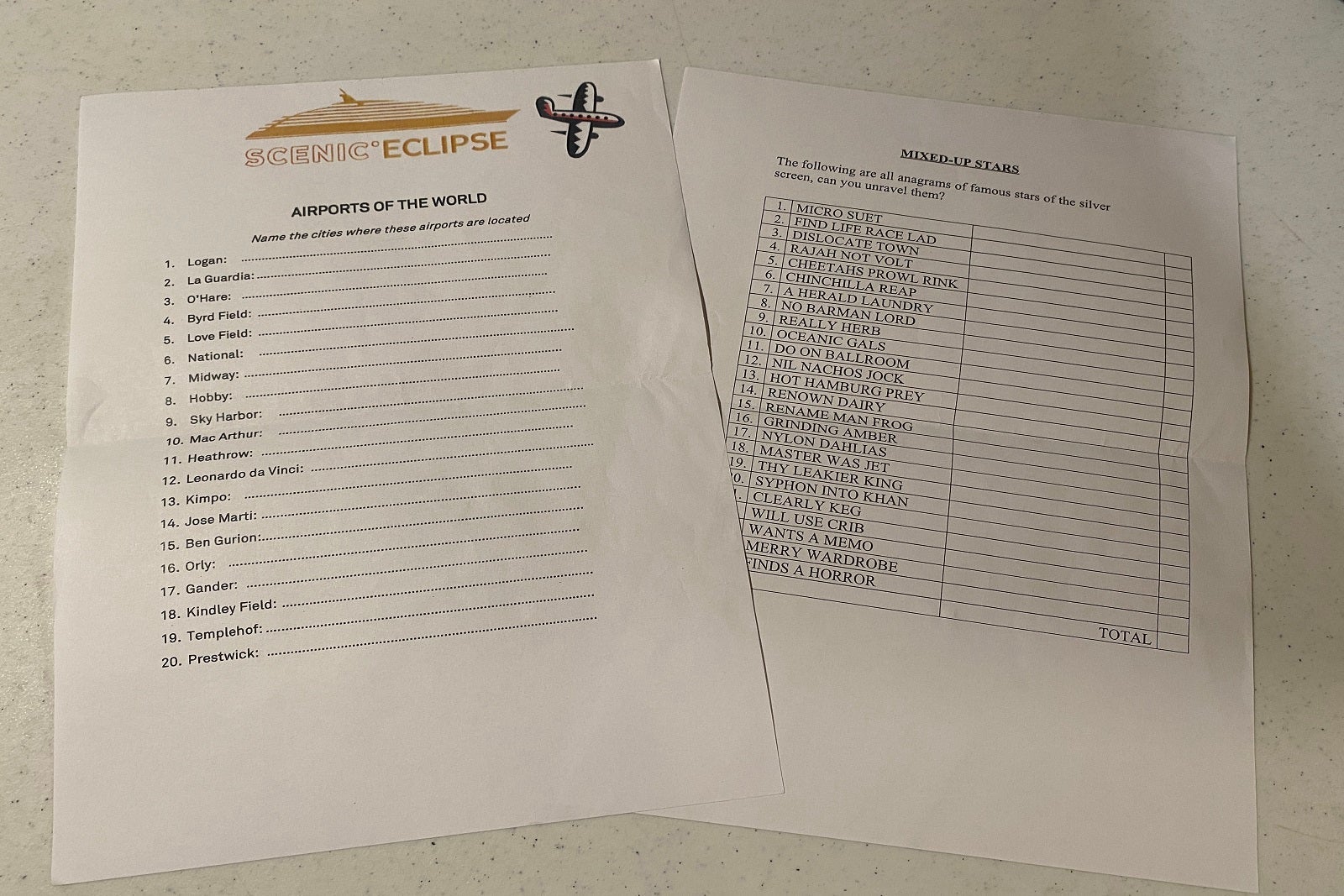 On a ship so tiny, there were trivia regulars, including the people in my group and me. On days when we missed the quizzes because they conflicted with excursions, they found time to read us the questions later in the day and provided additional brain teasers like word scrambles and rebus puzzles.