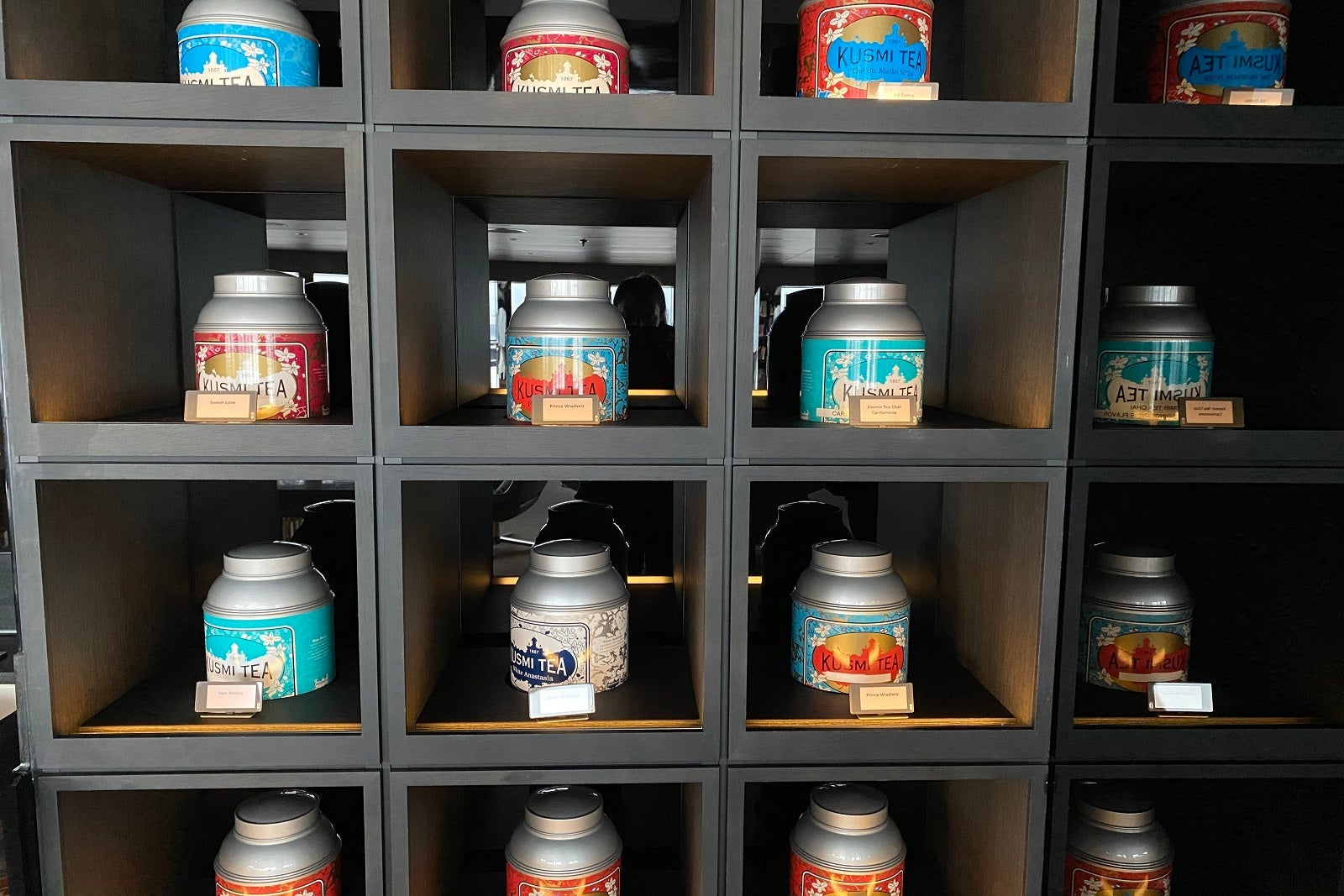 Sadly, the self-serve coffee machine was often empty, and when it worked, the drinks tasted watered down. The full wall of gourmet Kusmi teas made up for it, though.
