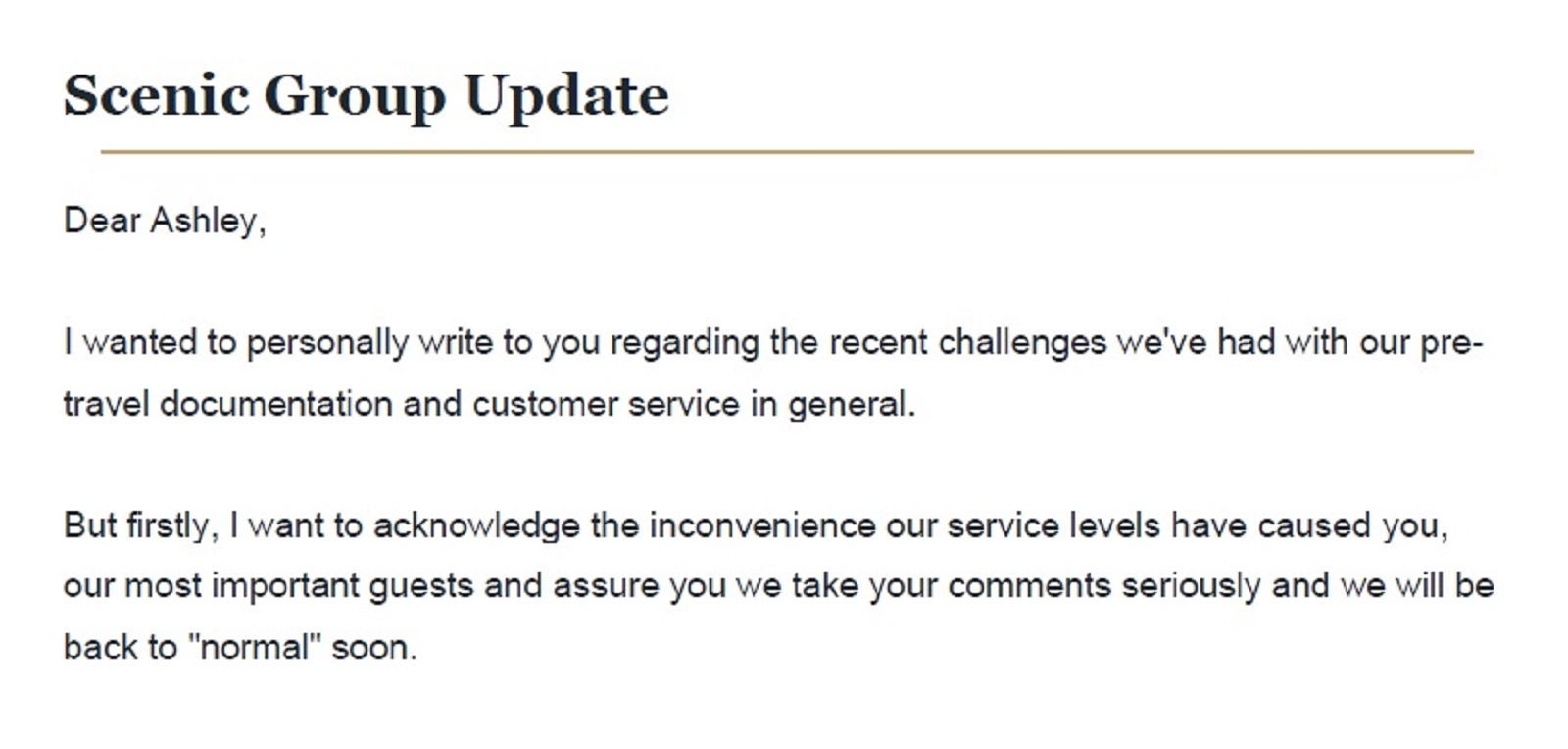 A few days after arriving home, my fellow passengers and I received an email from the line's founder and executive chairman, Glen Moroney, offering an apology for the scattered nature of the pre- and post-cruise experiences and explaining why certain aspects of the trip had gone awry.