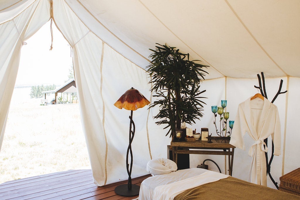 Located in a meadow surrounded by pine trees, The Resort at Paws Up is set within 37,000 acres in Greenough, Montana. This luxury ranch is home to one of the few outdoor spas in the U.S., known as Spa Town. Made up of multiple tents, there are full baths and showers in welcome tents, while individual treatment tents have sinks, heated massage tables and views of the meadows -- complete with horses.
