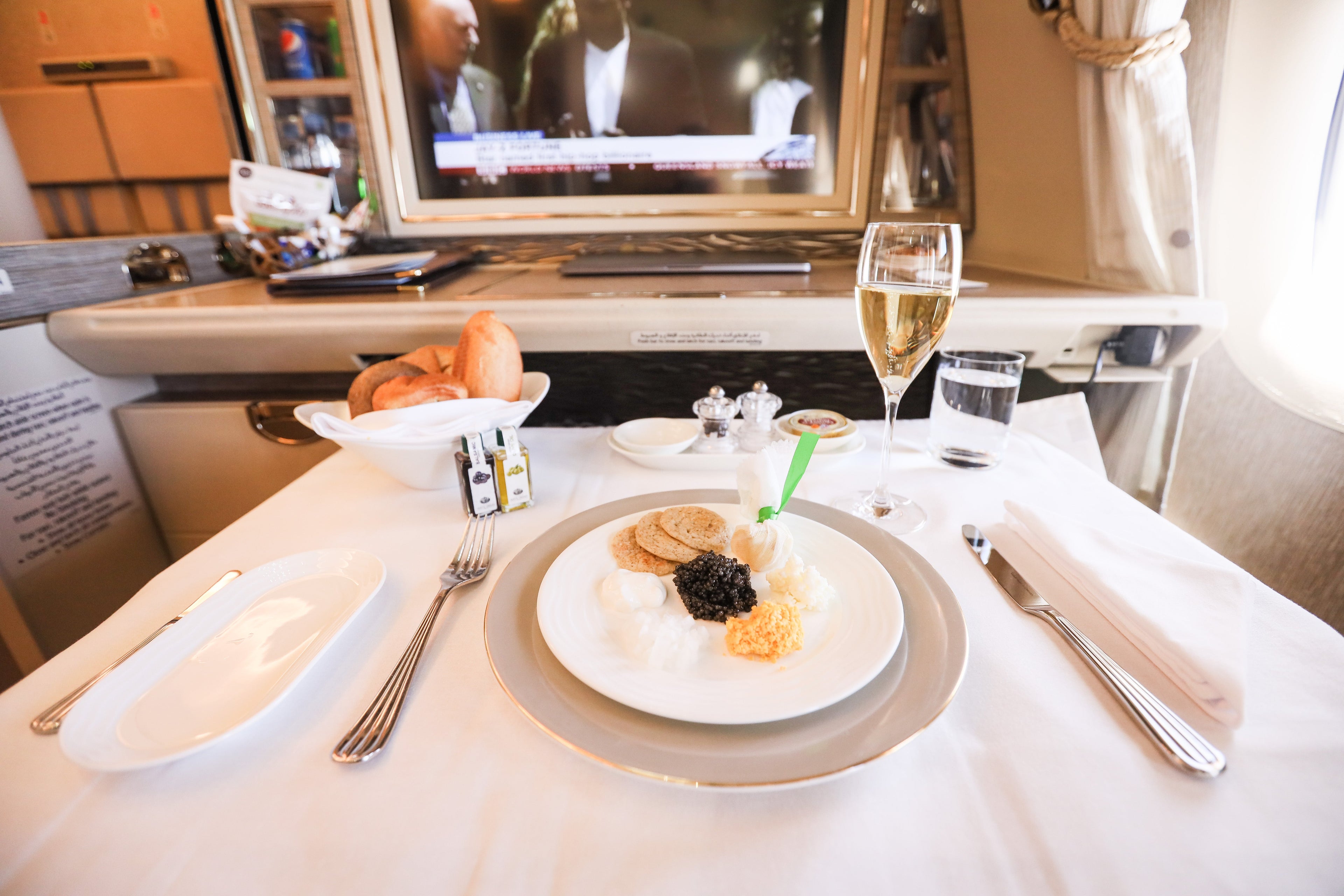 First class dining on Emirates. (Photo by Nicky Kelvin)