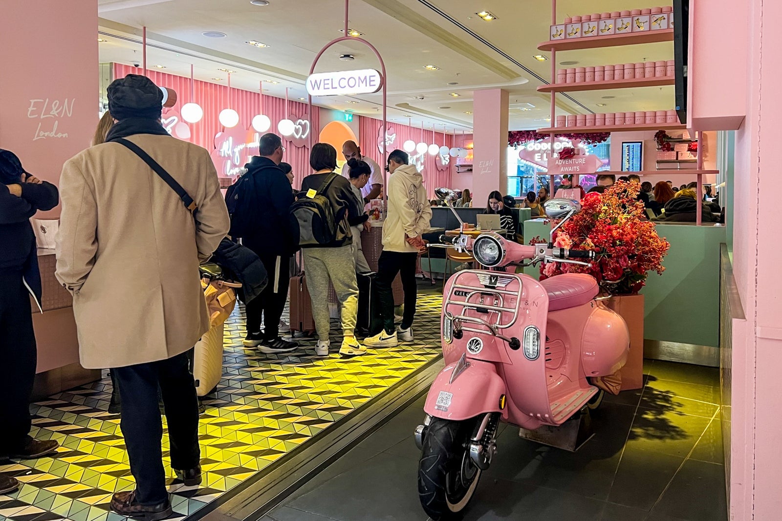 Once my family had settled in, I promptly ditched them to take a walk around the terminal (that is my way of stretching my legs after a long flight) and grab a coffee and cookie from the trendy EL&N London outpost that had been recommended by a co-worker. This cute all-pink cafe was certainly a treat for tired eyes.