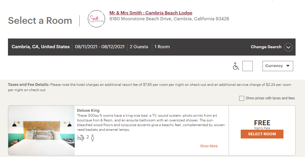 You can also redeem IHG Rewards points for some (but not all) Mr & Mrs Smith stays when you book through IHG Rewards. Due to dynamic pricing, the points cost of a particular stay will vary based on the property, when you book and when you want to visit. Especially after the recent IHG Rewards dynamic pricing devaluation, the redemption rates you'll get at IHG hotels tend to vary greatly. But, when you redeem IHG Rewards points for a Mr & Mrs Smith stay, I found you'll almost always get very close to 0.57 cents per point. Of course, this could change at any point.