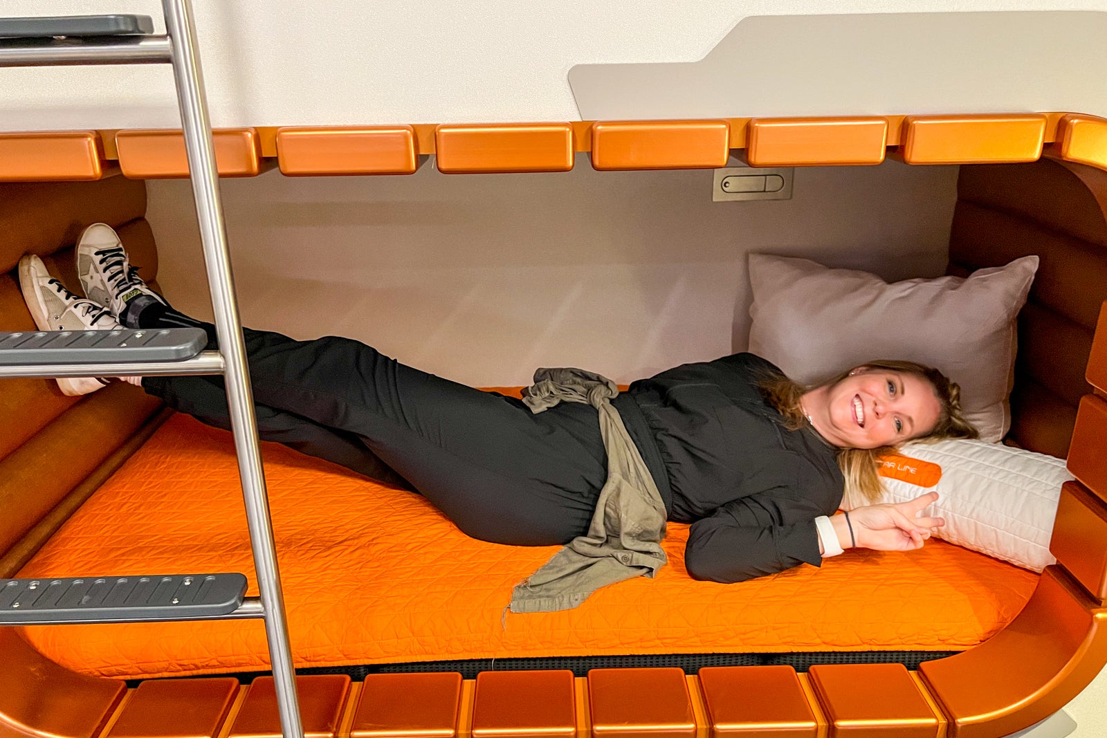 There are 100 cabins on the Starcruiser, which is a very small hotel by Disney standards — yet another reason this really is way more than a hotel. We had a standard cabin, which included a queen bed and two built-in bunk beds.