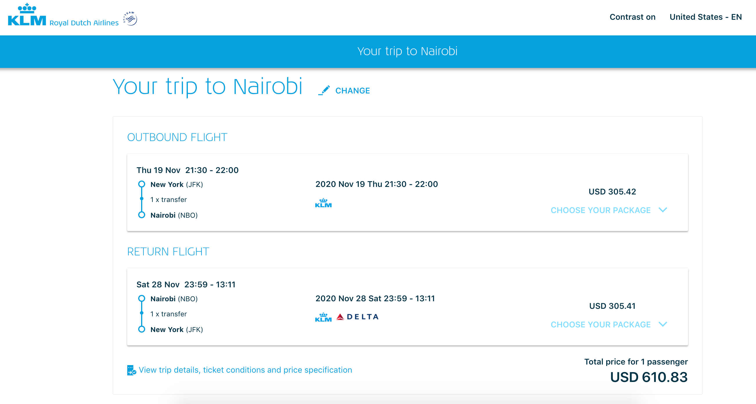 Flights to Kenya are quite affordable right now, with routes from New York (JFK) to Nairobi (NBO) beginning at just $611 round trip on KLM in November, while flights from Chicago (ORD) to Nairobi (NBO) are similarly priced at $619 round trip on Turkish Airlines around the same time.