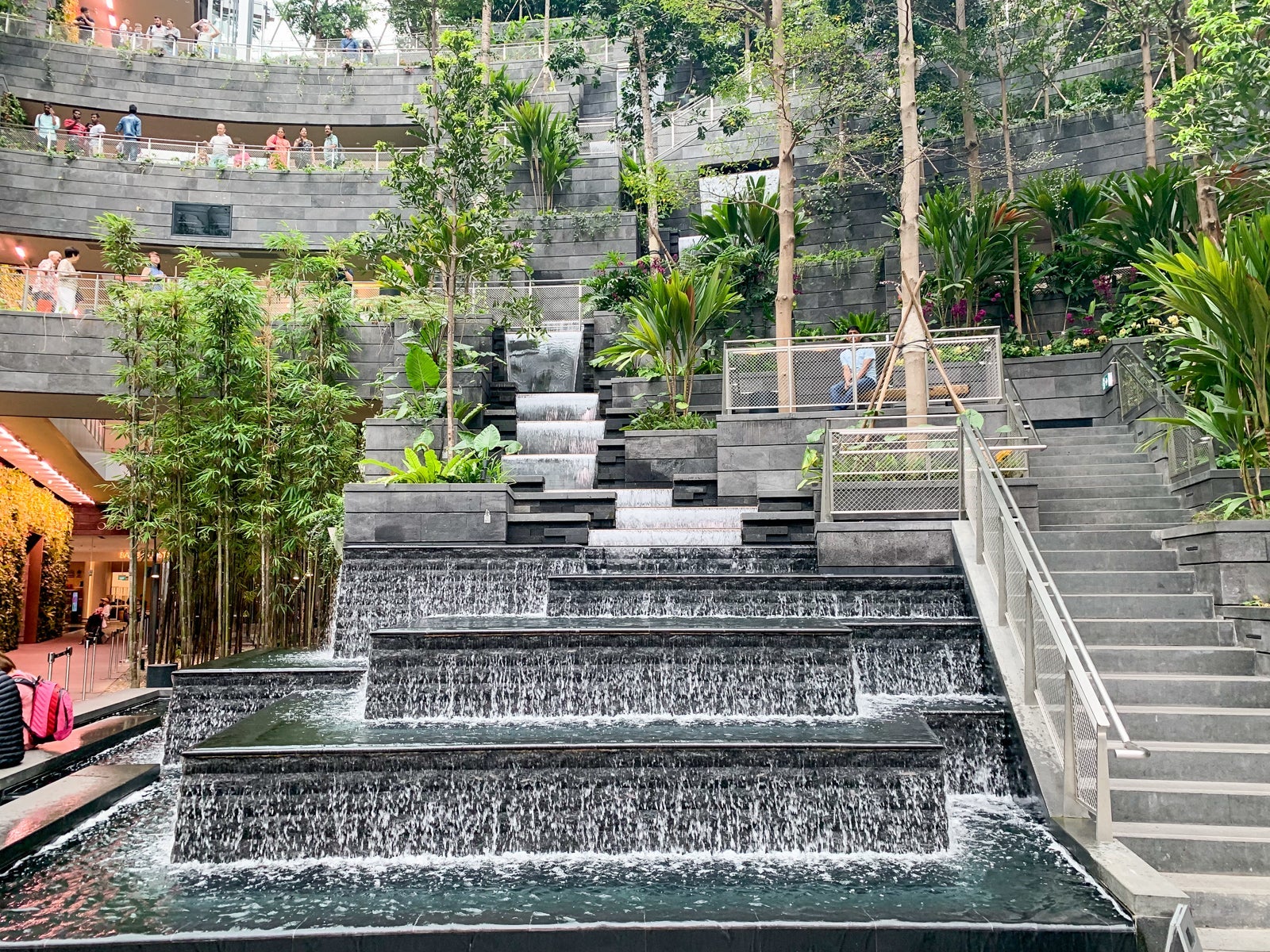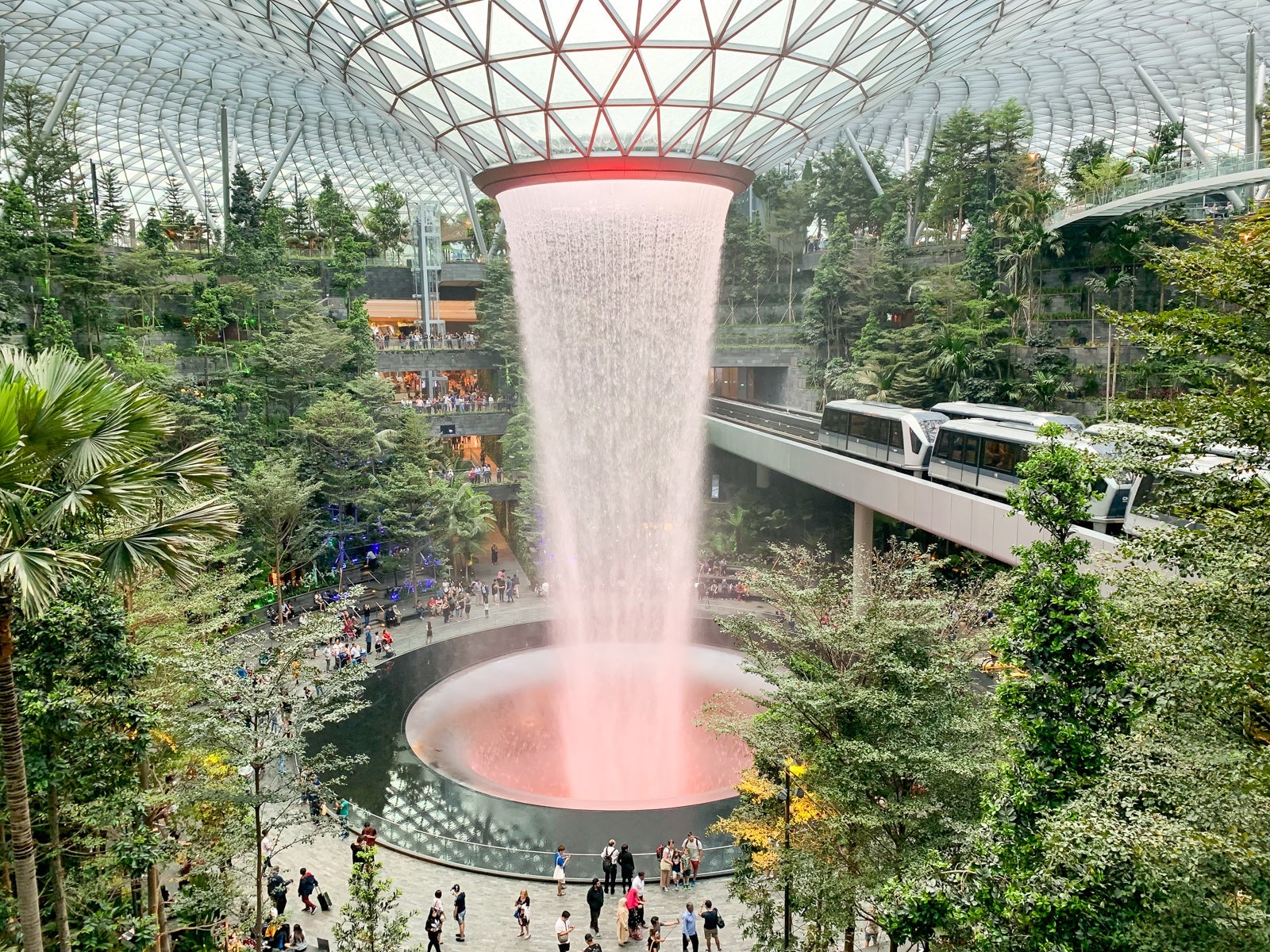 Earlier this year, Changi opened The Jewel, a 1.46-million-square-foot shopping and retail complex connected to the airport. The Jewel is home to the world's largest indoor waterfall, the 131 foot tall HSBC Rain Vortex, which dumps over 10,000 gallons of water per minute through the center of the building.