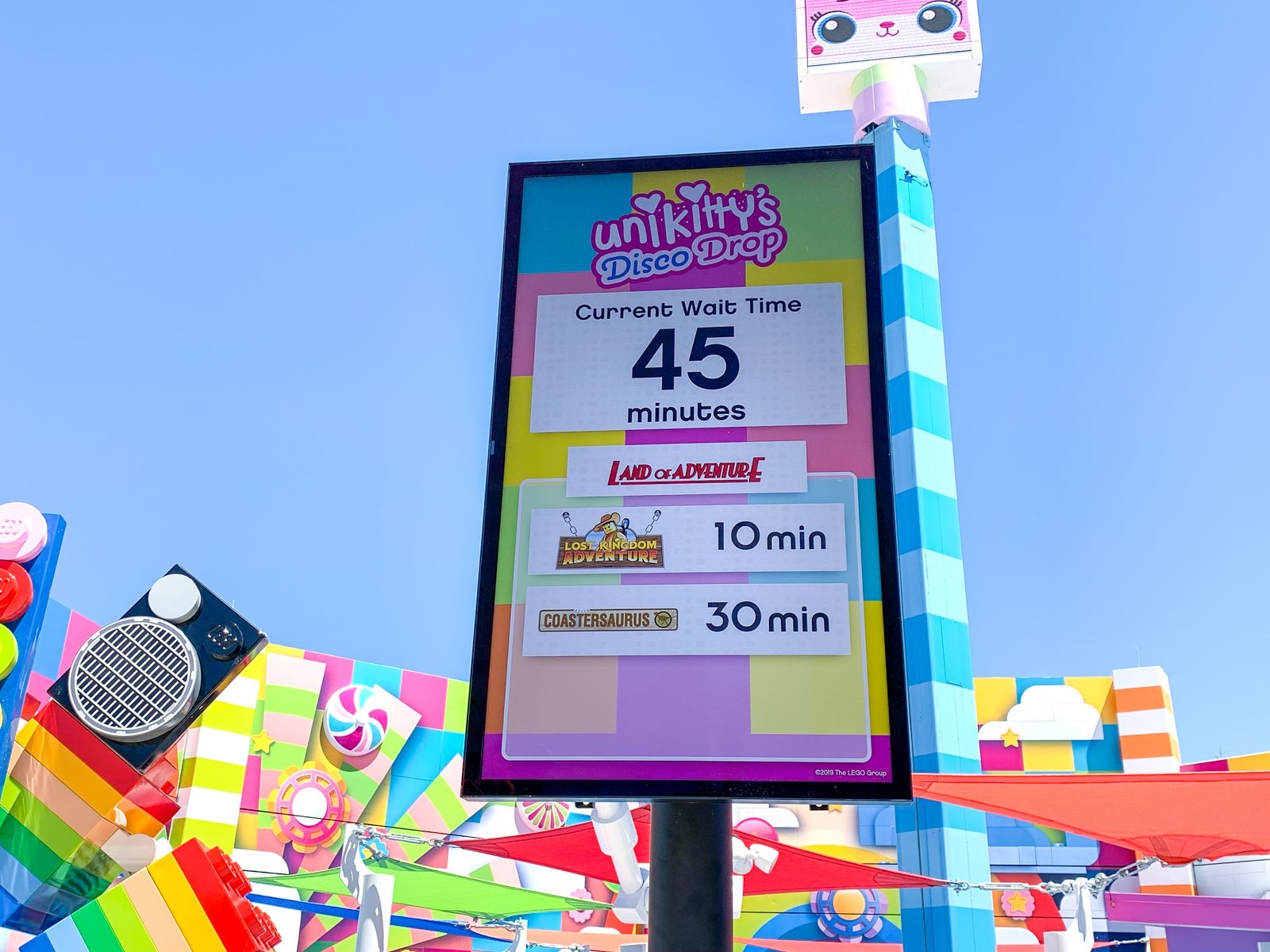 From there, we trimmed a 45-minute wait for Unikitty's Disco Drop into less than a five-minute wait.