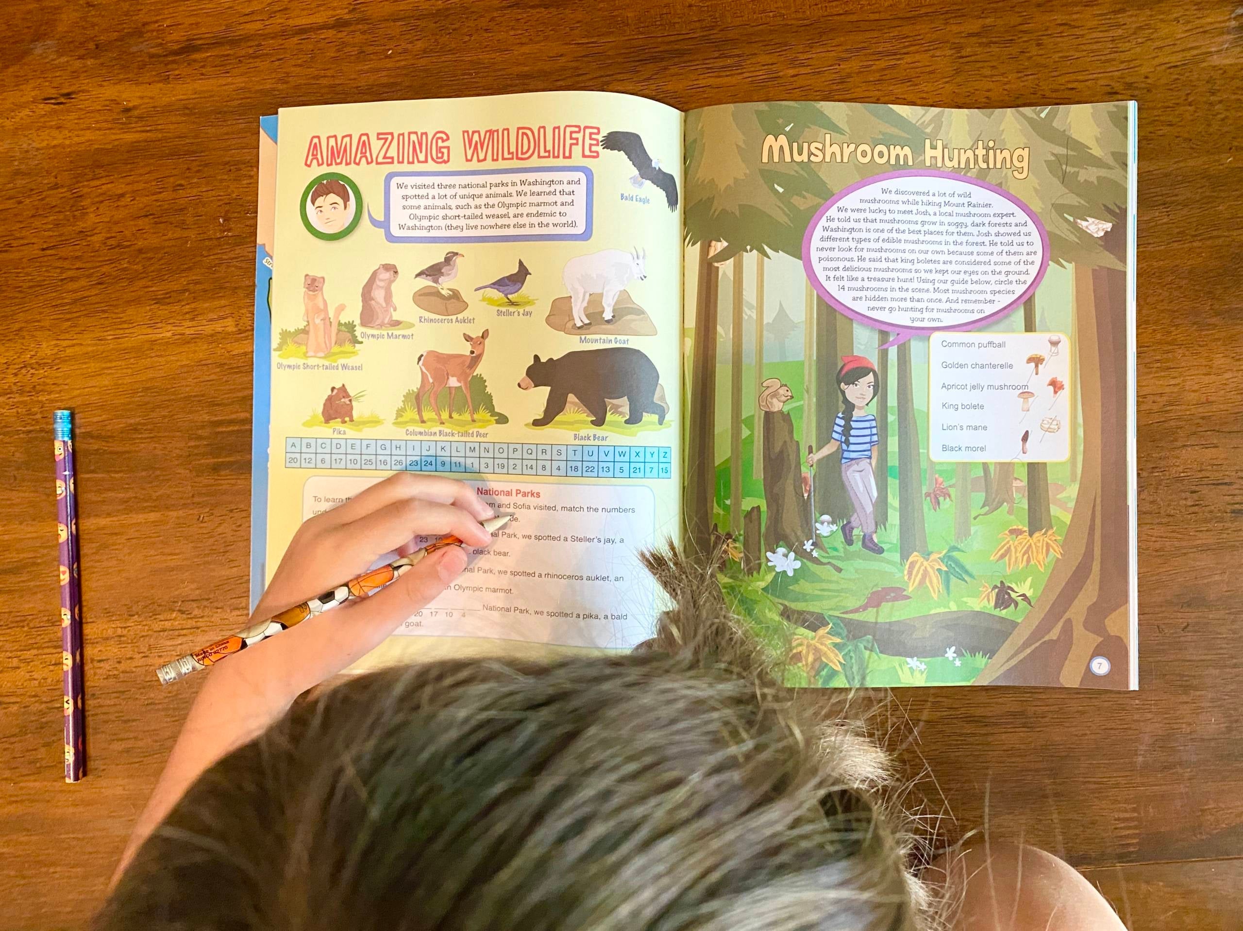 TPG's Summer Hull tested the USA Edition, geared to kids aged 7–12 and focused exclusively on the states across the U.S. With this subscription, each month you'll receive a two-sided workbook that features two different states.