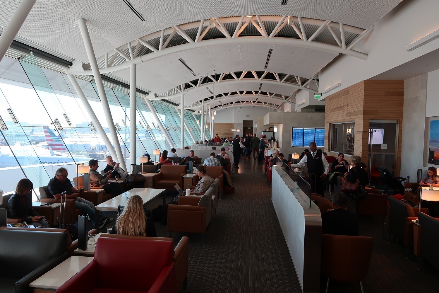 Access: AAdvantage Platinum elites and up traveling internationally, Oneworld Sapphire and Emerald and members and business- and first-class passengers who are connecting to or from qualifying international or premium transcontinental American- or Oneworld-operated flights.