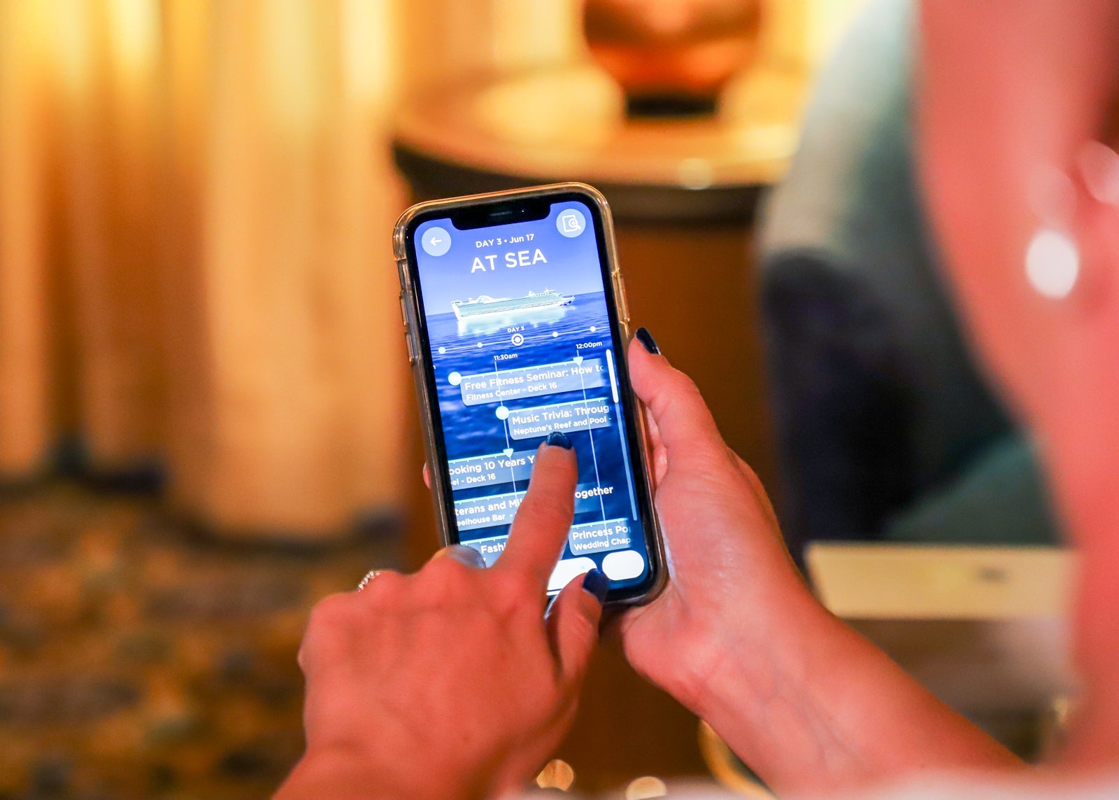 In addition to food and drinks, you can order a wide range of retail items such as sunscreen and clothing by app to wherever you are on board. The app also allows you to check your bill, book shore excursions, buy a beverage package and play interactive games. In what could be a dangerous innovation for those who love to gamble, the app also allows for the playing of casino games from anywhere on board, including your room.